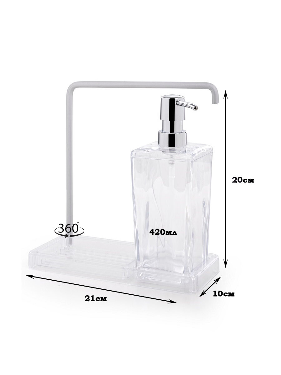 диспенсер для моющего средства объёмом 420 мл с вращающейся вешалкой для тряпки и отсеком для губки