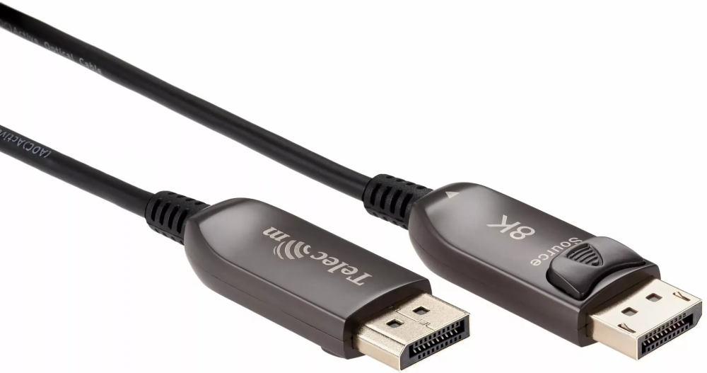 Оптический активный кабель DisplayPort -> DisplayPort; 50 метров; Серебристый, Черный