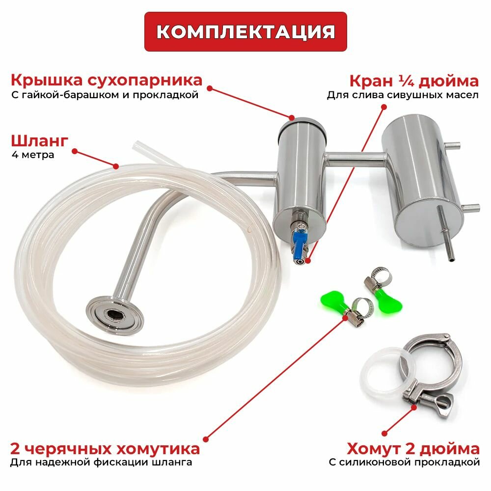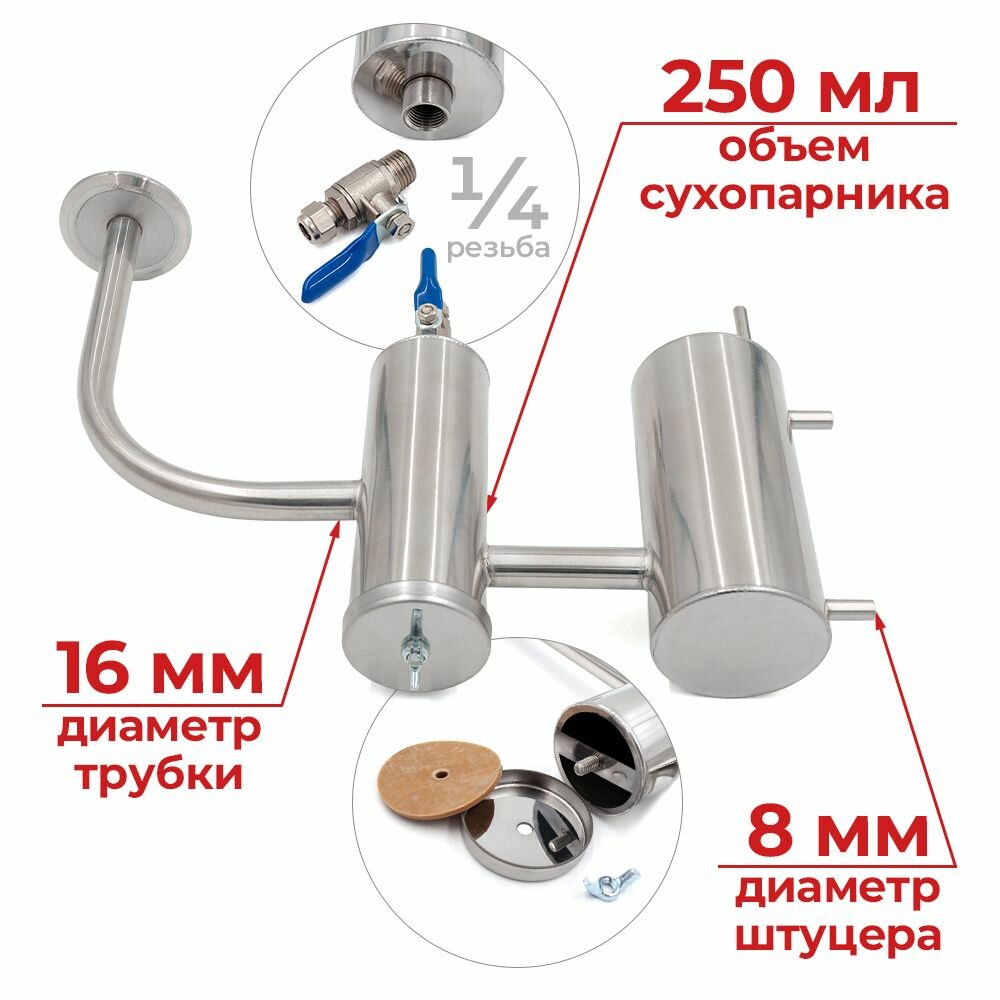 Дистиллятор без куба Практик с одним сухопарником отлично подойдет для переоборудования любых автоклавов с выходом под кламп 2 дюйма в самогонный аппарат, на котором вы сможете получать ароматные спирты у себя дома.