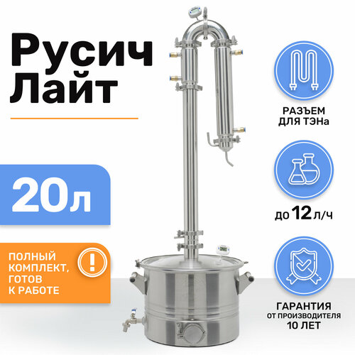 | Подробная комплектация | Холодильник, дефлегматор, царга 50 см, узел отбора хвостов, 2 поворота на 90 градусов, перегонный куб, 4 пневмофиттинга, набор силиконовых уплотнений, краник, носик с ТСА, набор кламповых хомутов, клапан сброса давления, 2 цифровых термометра, шланг 4м, тройник, игольчатый кран 2 шт, дивертор, книга рецептов, инструкция |