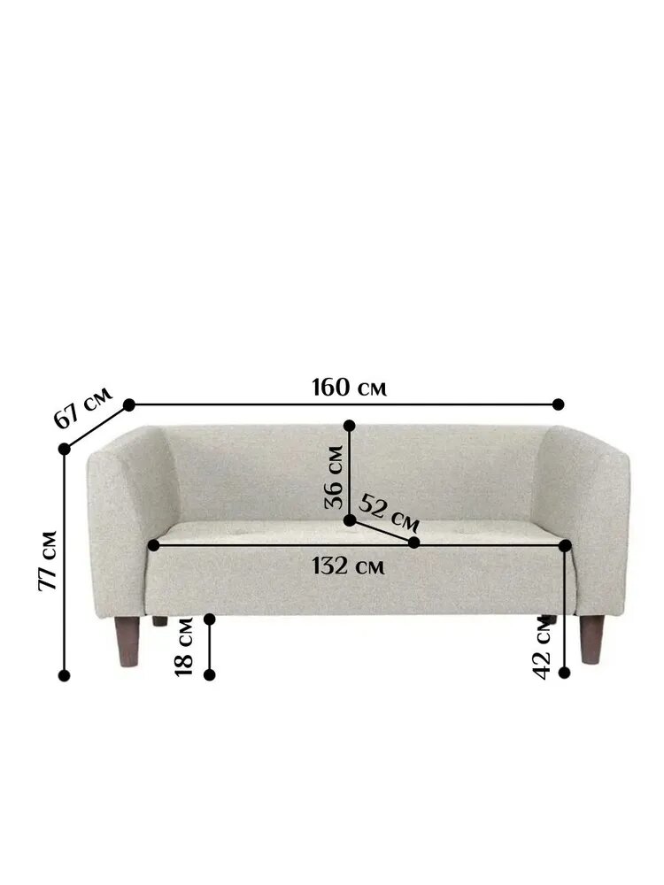 Диван прямой авди 160х67х77 см, нераскладной, бежевая рогожка