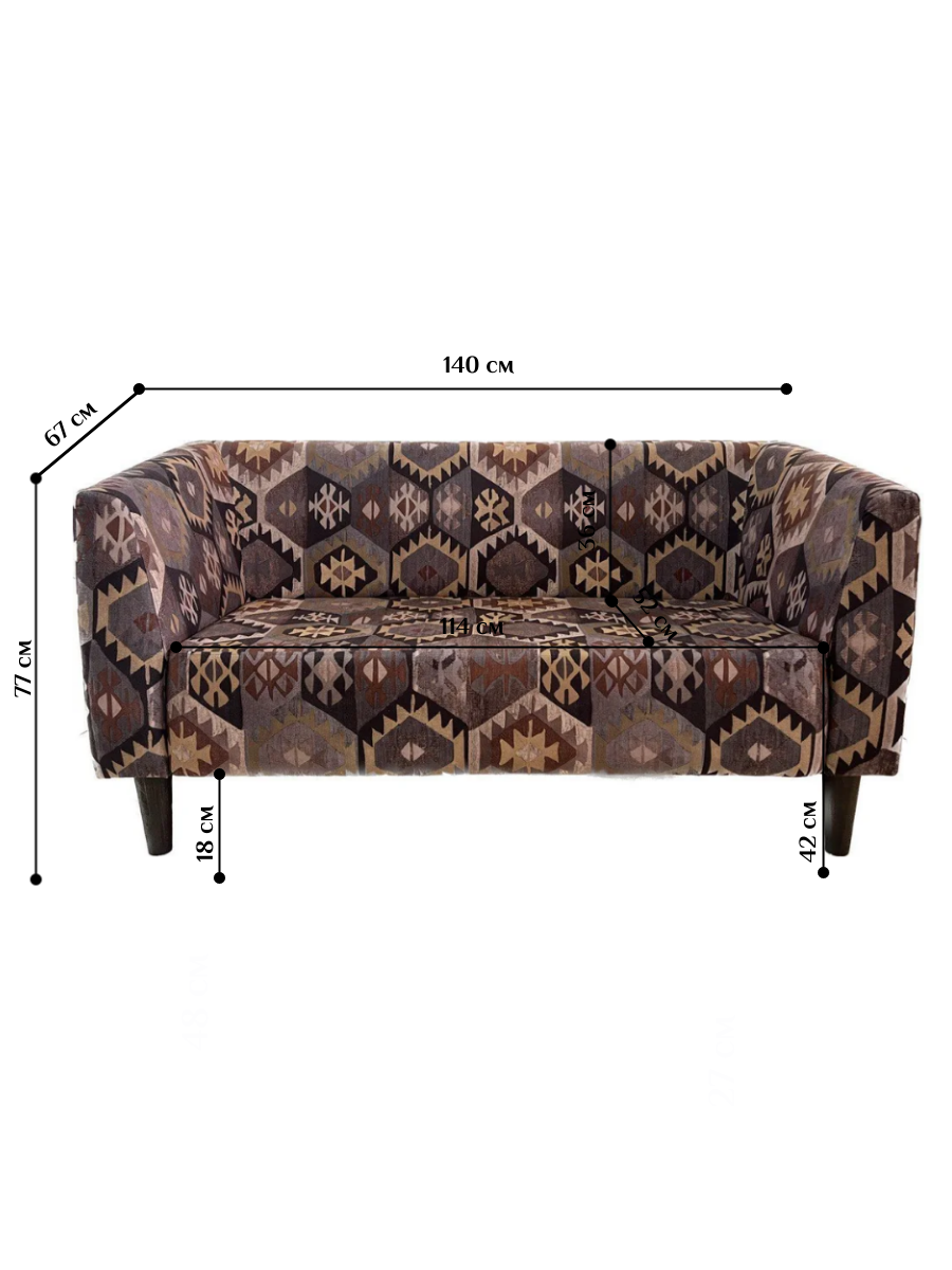 Диван прямой авди 140х67х77 см, нераскладной, мехико браун велюр