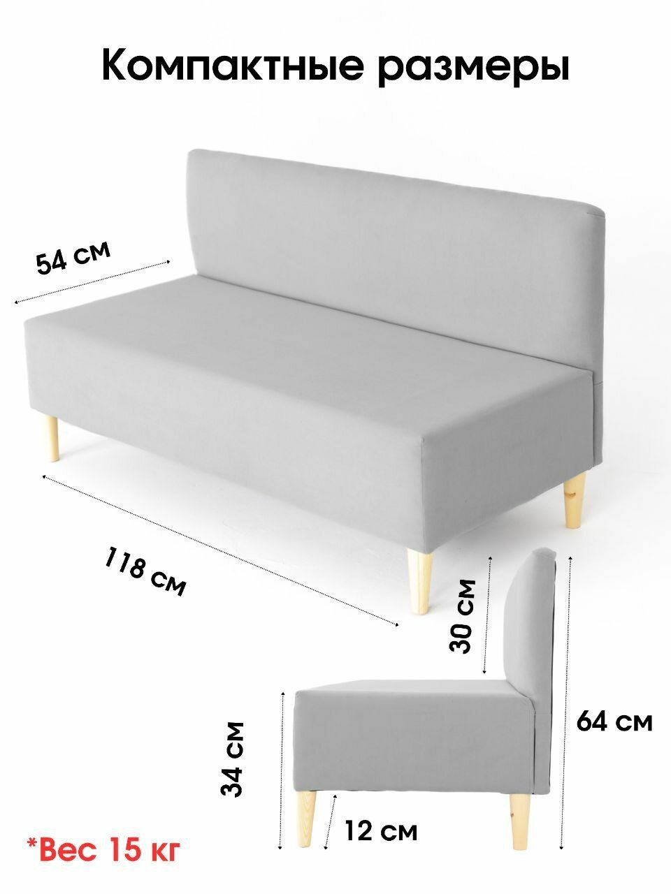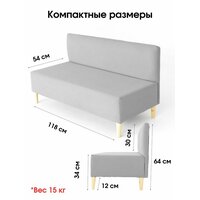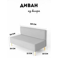 Диван-банкетка IVAMEBEL, велюр, серый, 118x54x64 см на деревянных ножках: сравнение цен, характеристики, фото, актуальное наличие и цены.