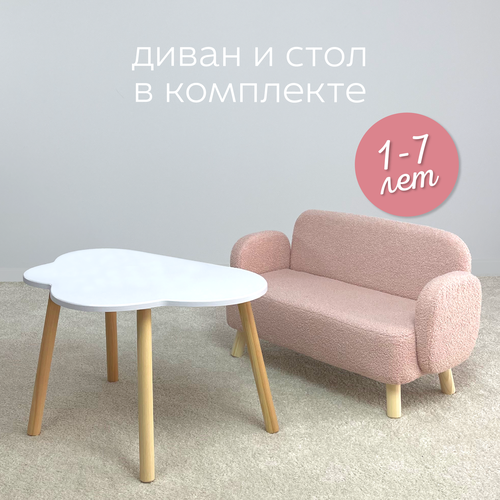 Детские диван и стол Облако от бренда DIMDOMkids представляют собой идеальное решение для создания уютного и функционального пространства в детской комнате. Диван изготовлен из качественной фанеры и сосны, а стол из МДФ, что обеспечивает их прочность и долговечность. Обивка дивана выполнена из натурального букле, что добавляет мебели элегантности и тепла.