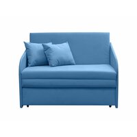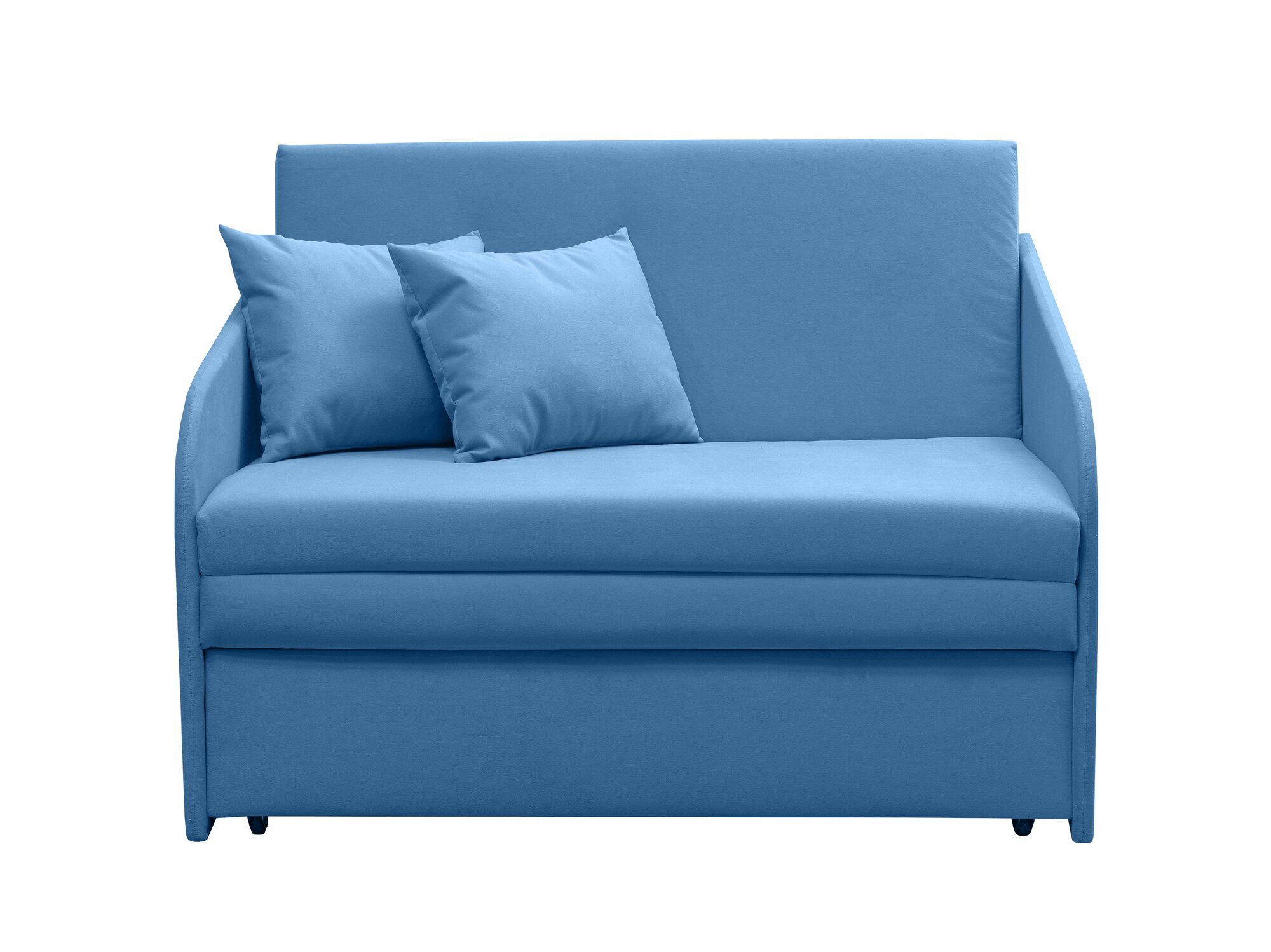 Диван выполнен в голубом цвете, который будет гармонично смотреться в любом интерьере. Обивка из велюра искусственного материала приятна на ощупь и легко чистится. Каркас изготовлен из дерева, что обеспечивает прочность и долговечность изделия.