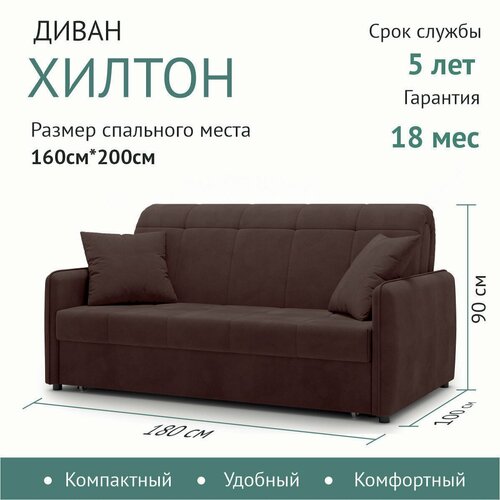 Диван-кровать раскладной Прямой на металлокаркасе, Аккордеон, 160х200 спальное место, Хилтон Коричневый: сравнение цен, характеристики, фото, актуальное наличие и цены.