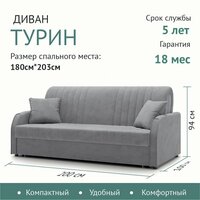 Диван-кровать раскладной Прямой на металлокаркасе, Аккордеон, 180х200 спальное место, Турин Светло Серый: сравнение цен, характеристики, фото, актуальное наличие и цены.
