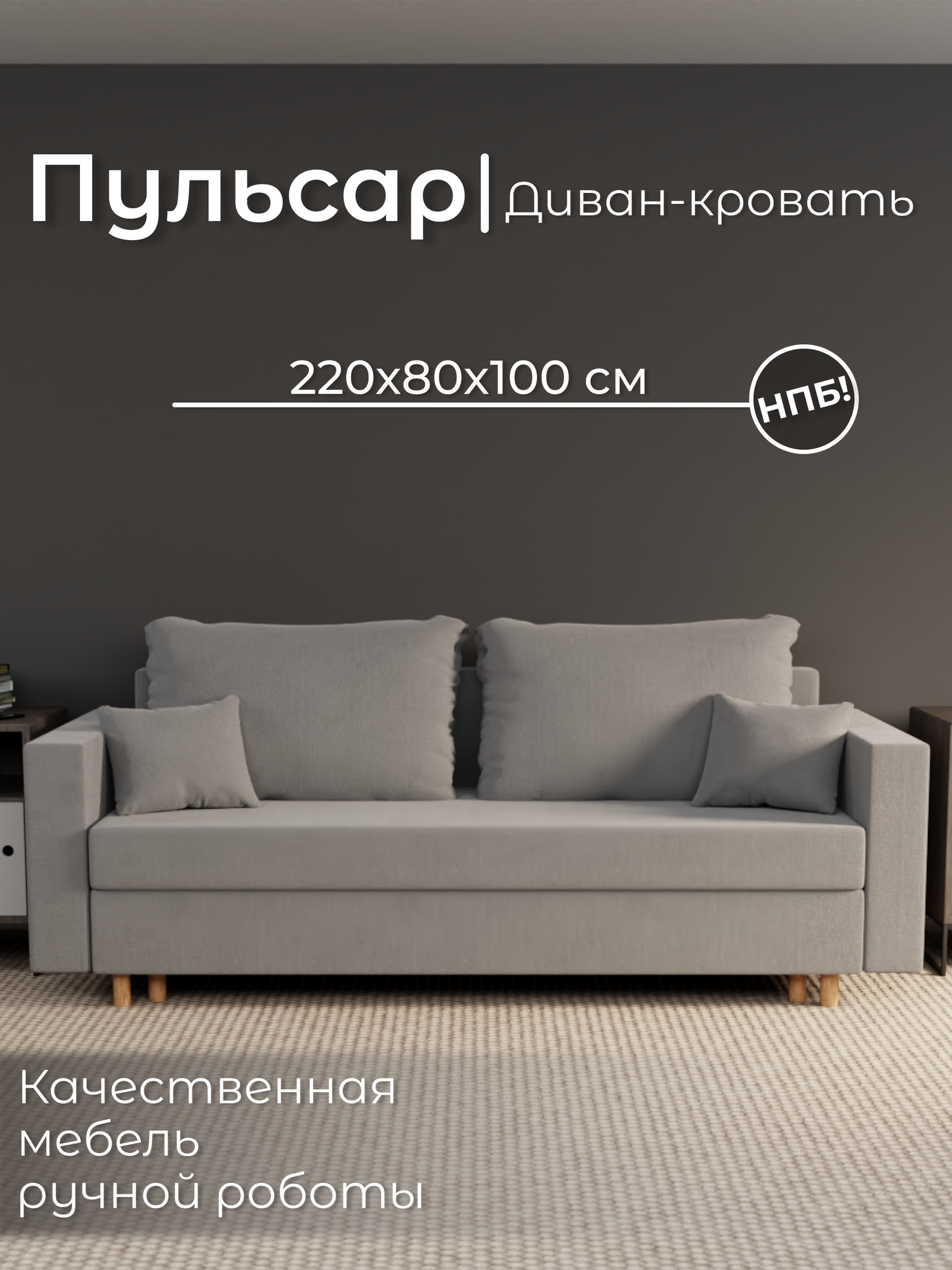 Диван, диван-кровать, диван раскладной «Пульсар» НПБ, Велютта люкс 32, размеры 220х80х100, серый: сравнение цен, характеристики, фото, актуальное наличие и цены.