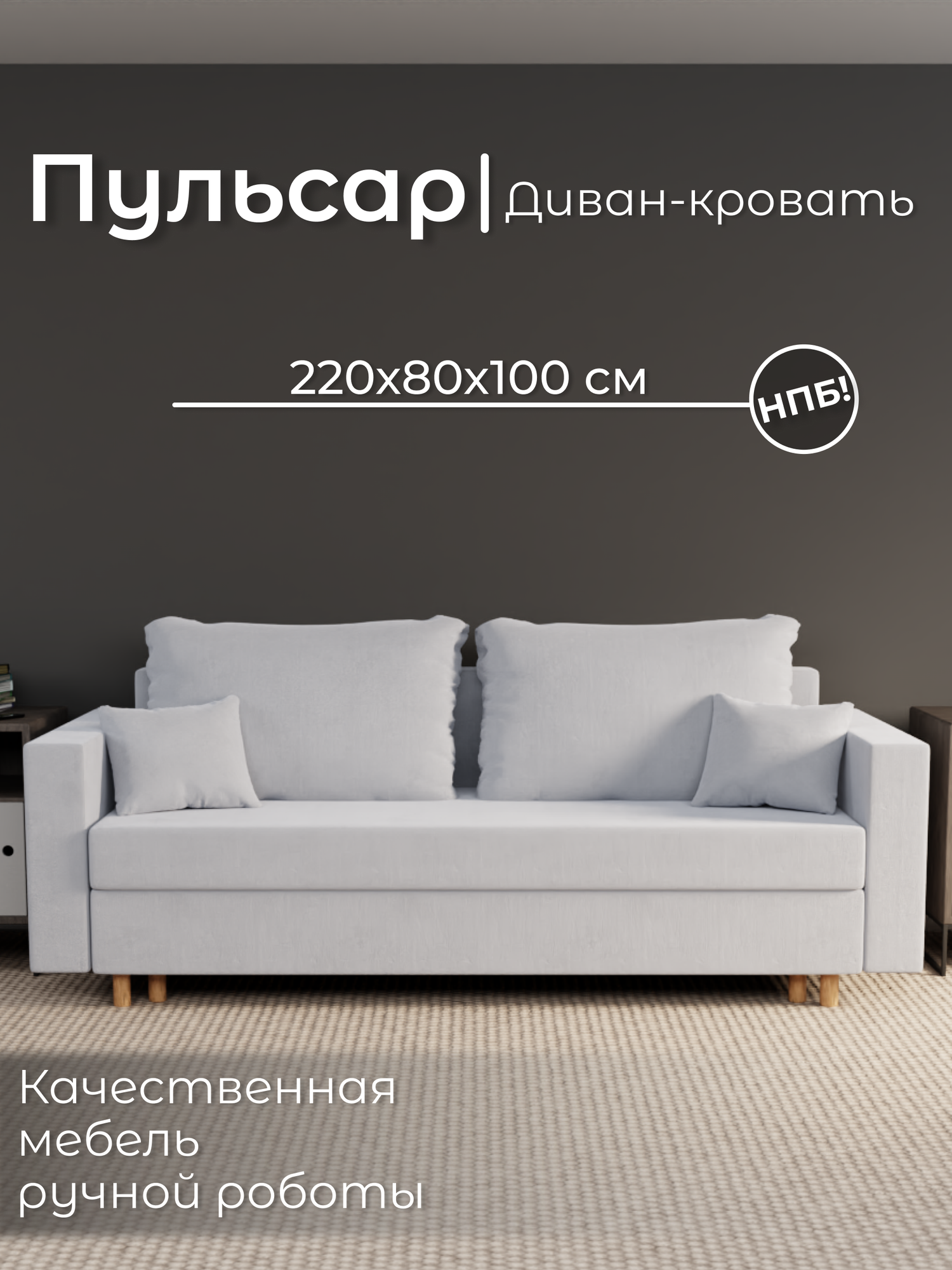 Диван, диван-кровать, диван раскладной «Пульсар» НПБ, Велютта люкс 50, размеры 220х80х100, светло-серый: сравнение цен, характеристики, фото, актуальное наличие и цены.
