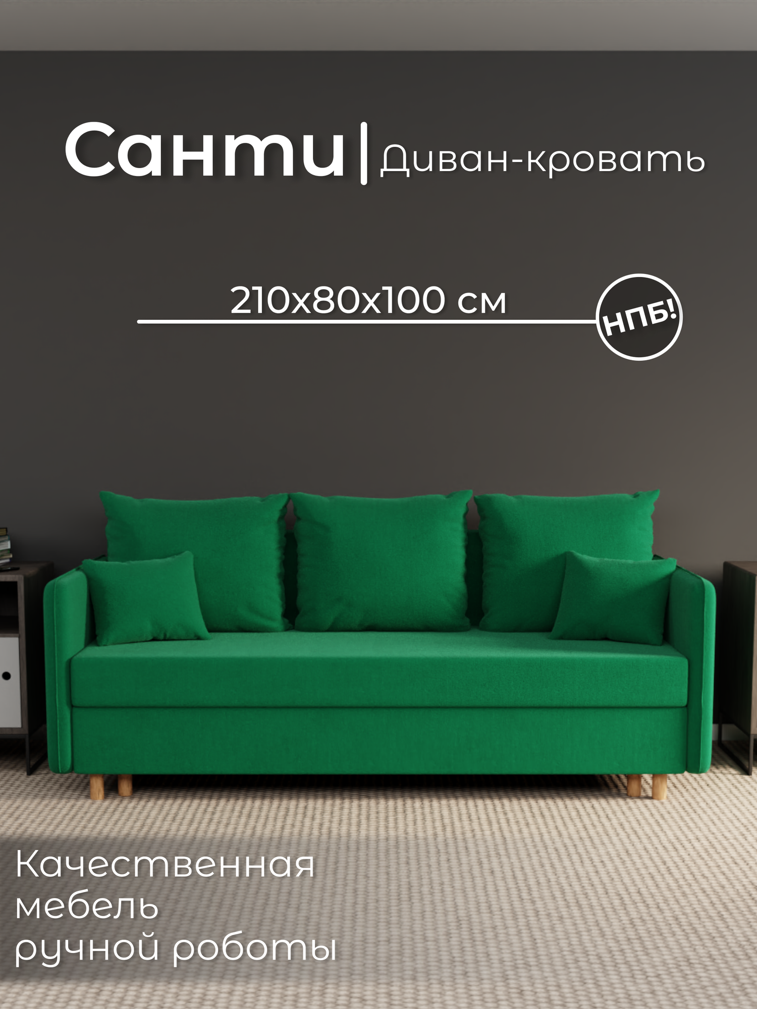Диван, диван-кровать, диван раскладной «Санти» НПБ, Велютта люкс 33, размеры 210х80х100, зеленый: сравнение цен, характеристики, фото, актуальное наличие и цены.