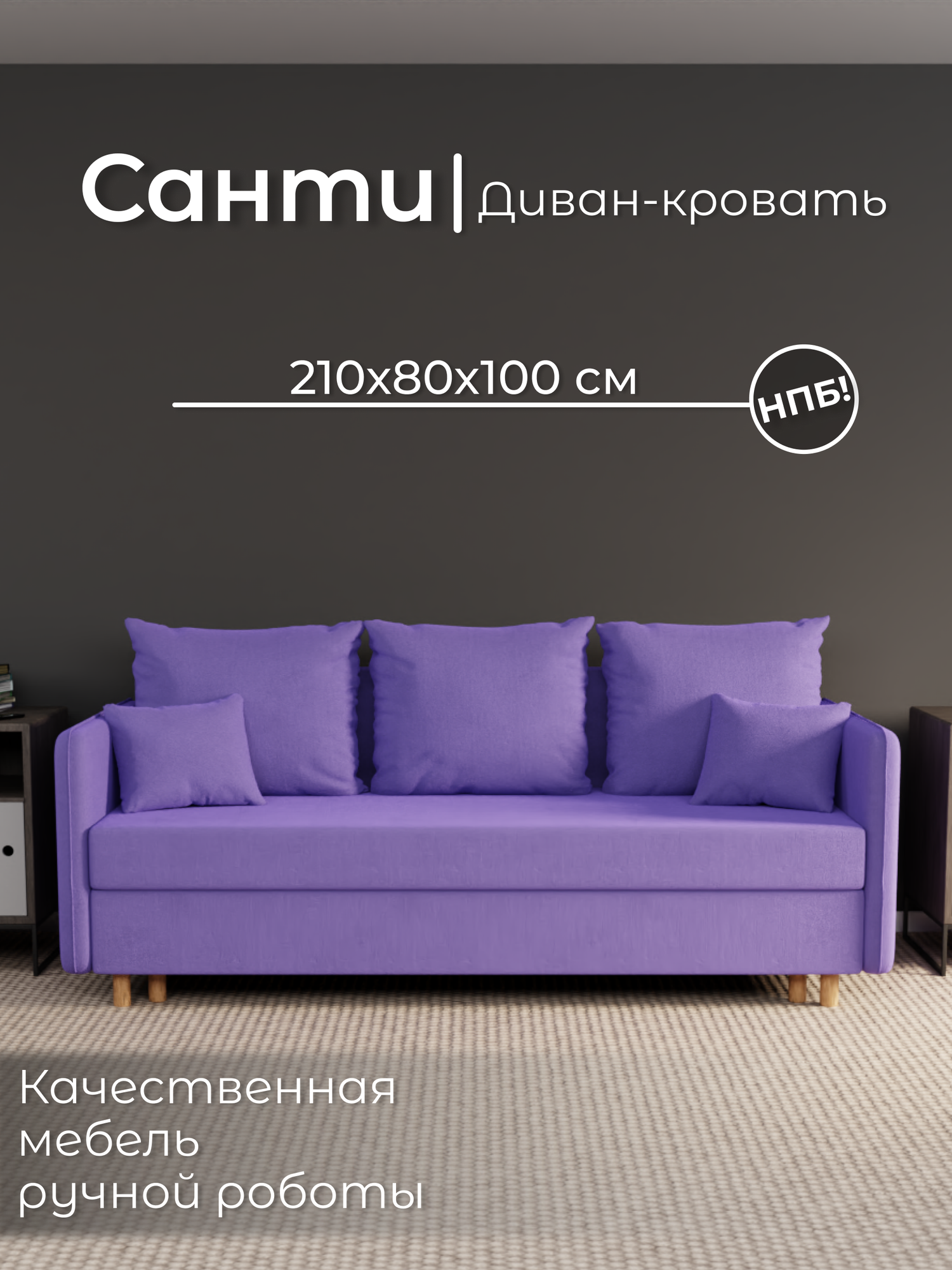 Диван, диван-кровать, диван раскладной «Санти» НПБ, Велютта люкс 46, размеры 210х80х100, фиолетовый: сравнение цен, характеристики, фото, актуальное наличие и цены.