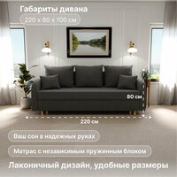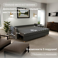 | Особенности | пружинный блок, раскладная конструкция, с подлокотниками, съемные подушки, ящик для белья |