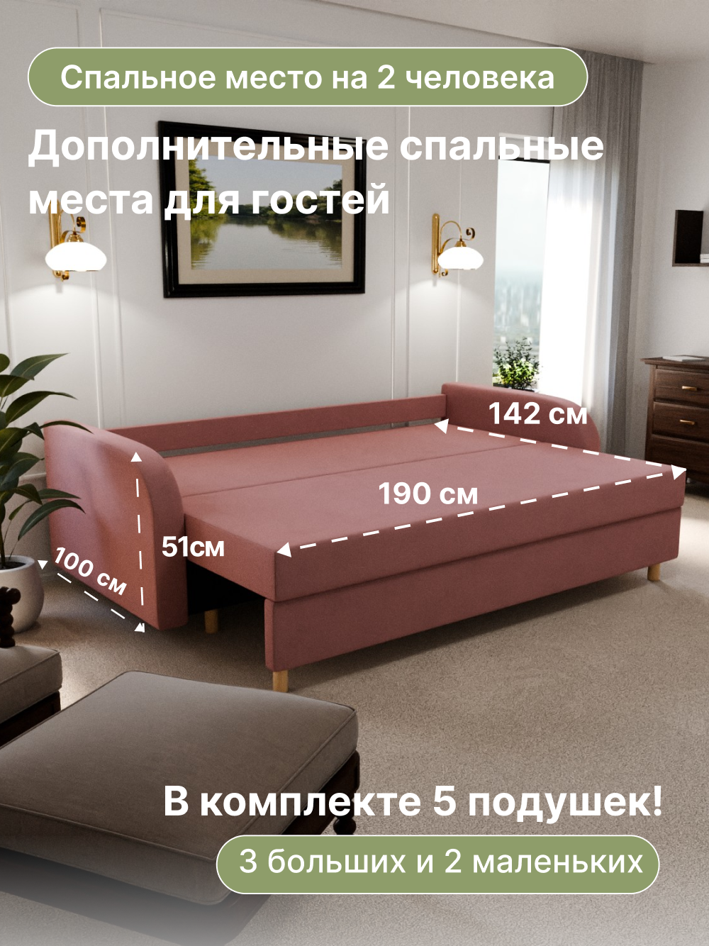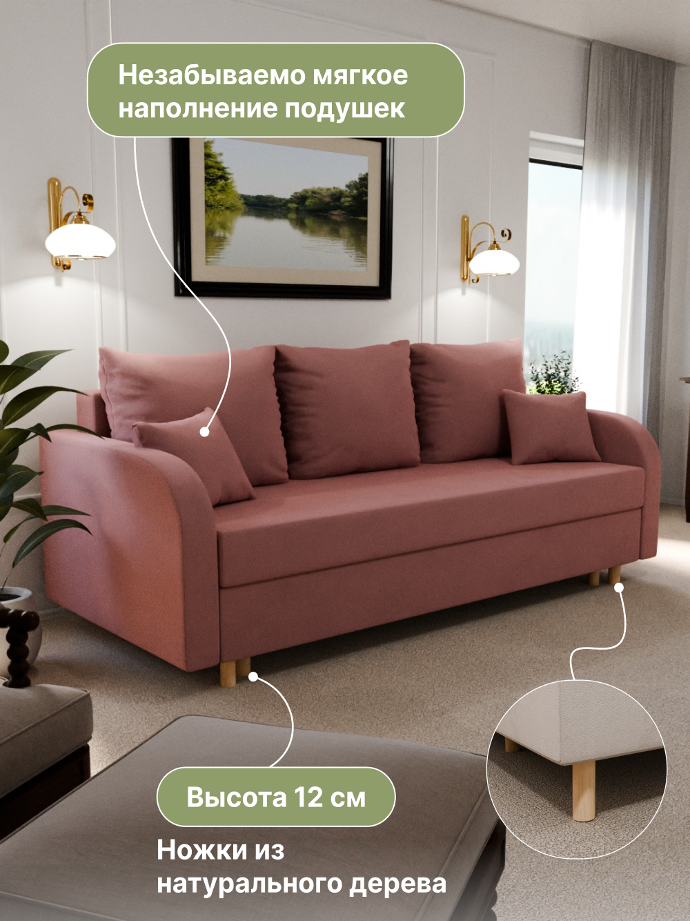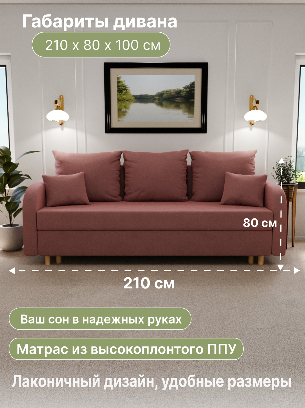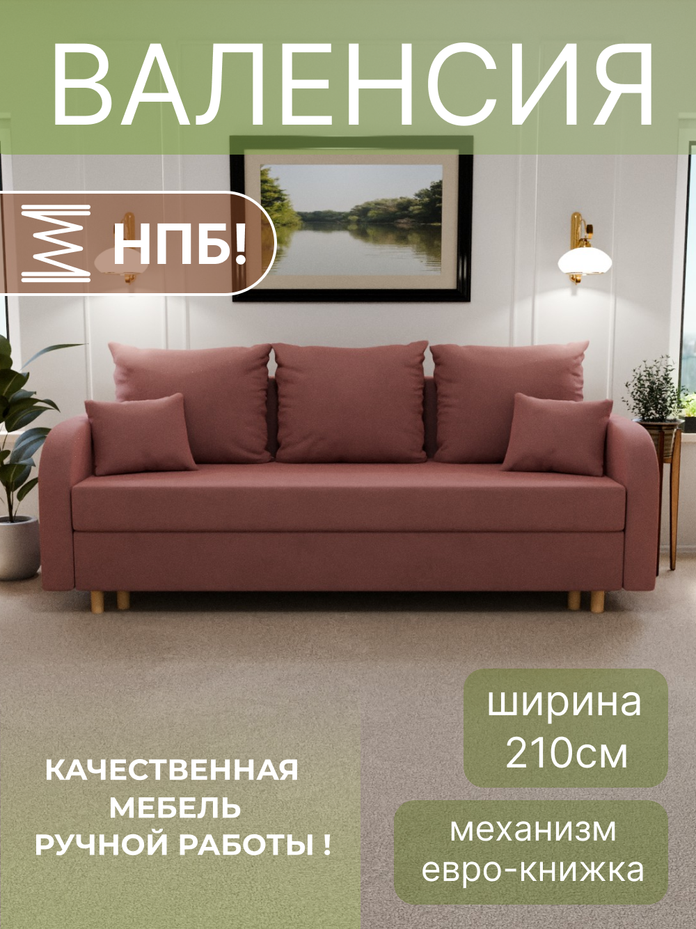 Диван, диван-кровать, диван раскладной «Валенсия» НПБ, Велютта люкс 62, размеры 220х80х100, розовый: сравнение цен, характеристики, фото, актуальное наличие и цены.
