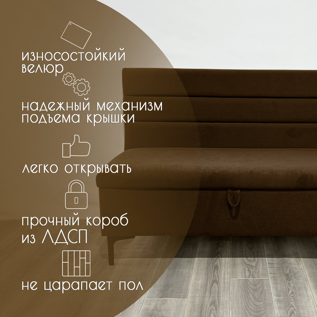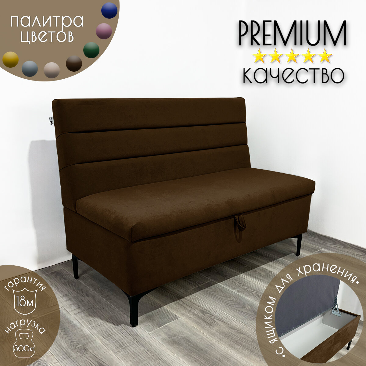 Диван для кухни «Горизонт» с ящиком для хранения/Велюр/Коричневый 120x59x85 (см): сравнение цен, характеристики, фото, актуальное наличие и цены.