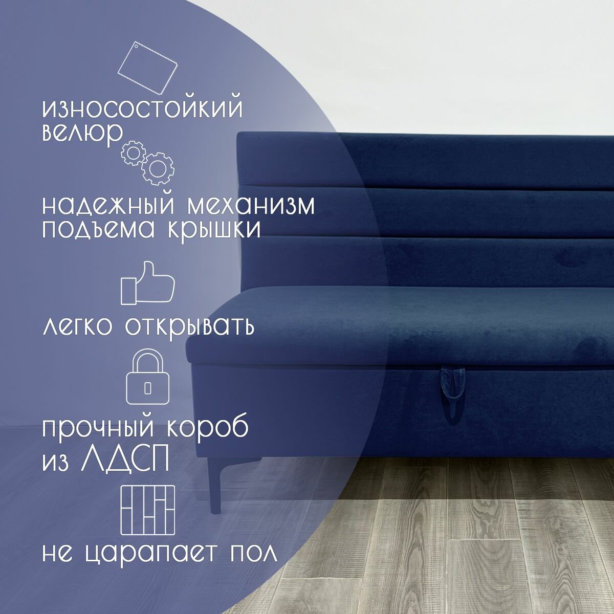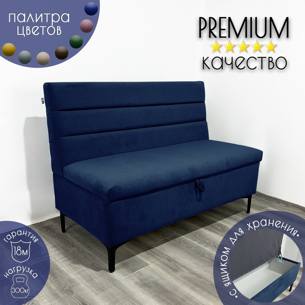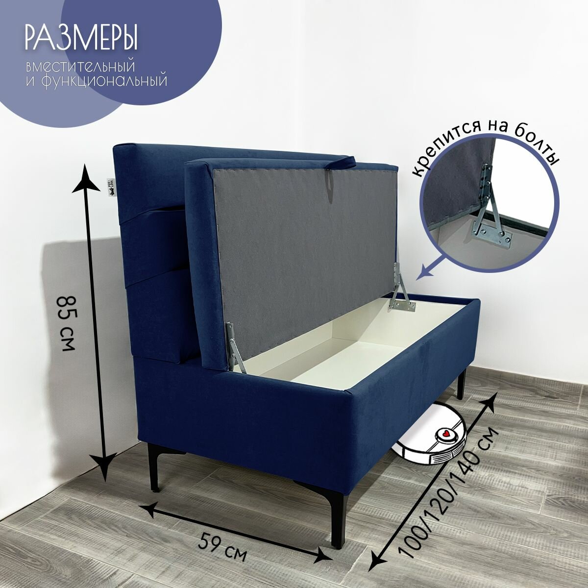 Диван маленький модульный в стиле лофт для дома на кухню, в гостиную, балкон коридор и для прихожей Горизонт / Мини диванчик домашний офисный, синий велюр, 100х59х85 см с ящиком для хранения