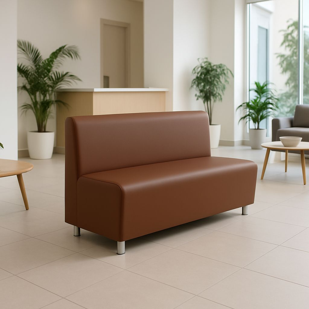 Диван для офиса Слим 120х65х85см выполнен в коричневом матовом цвете, что придает ему элегантный и современный вид. Искусственная кожа, из которой изготовлен диван, обеспечивает долговечность и простоту ухода.