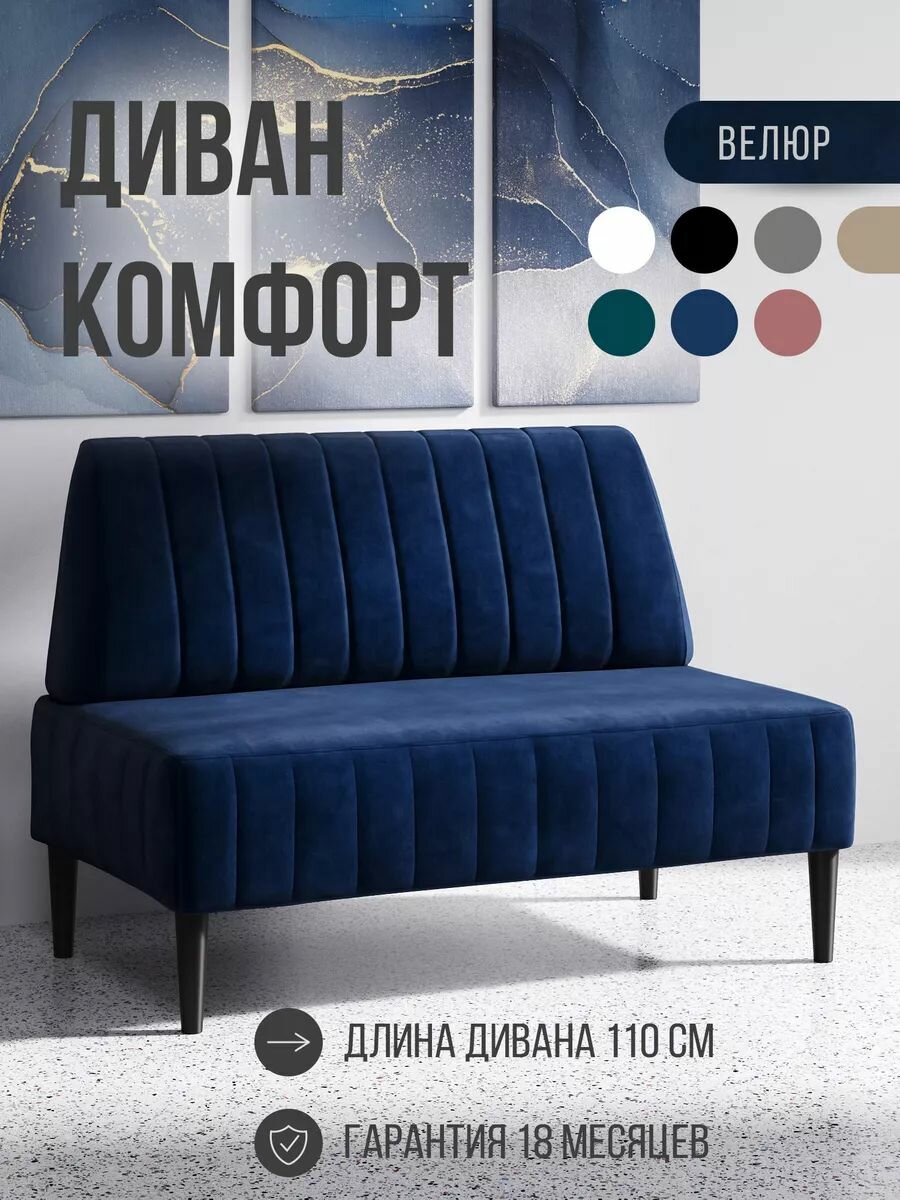 Диван двухместный MVM Комфорт 110 см, прямой, синий, велюр, нераскладной: сравнение цен, характеристики, фото, актуальное наличие и цены.