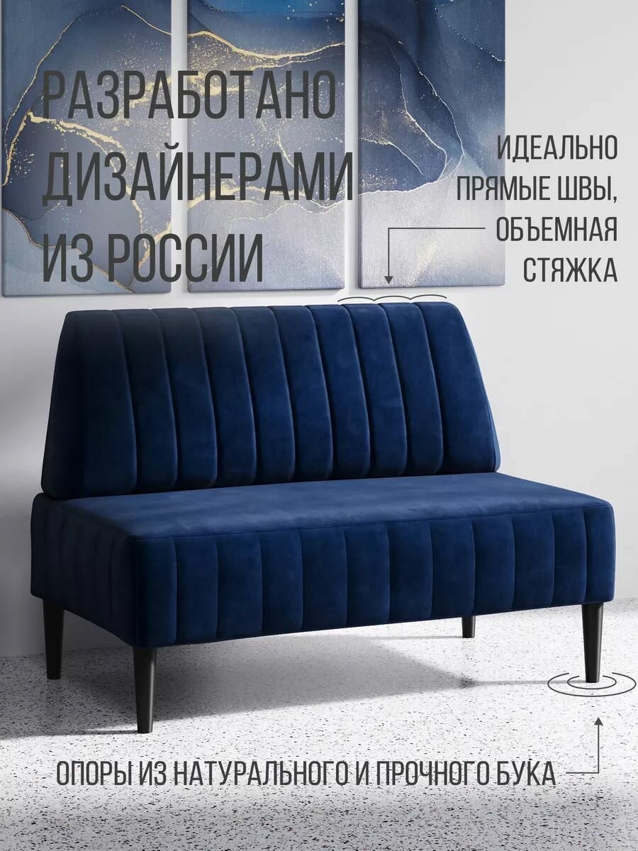 Купить Диван двухместный MVM Комфорт 110 см, прямой, синий, велюр, нераскладной с доставкой по всей России.