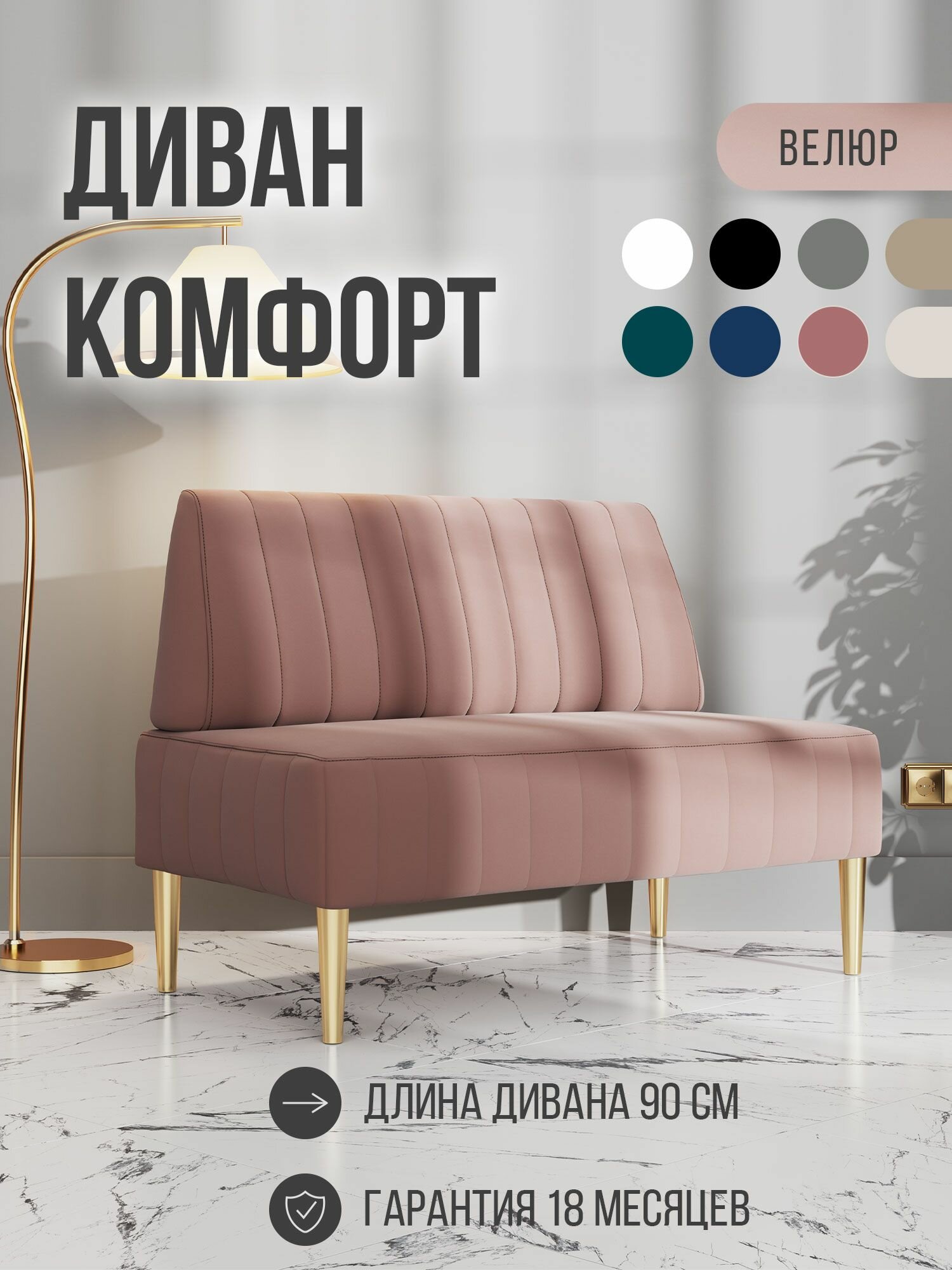 Диван двухместный MVM Комфорт 90 см, прямой, розовый, велюр, золотые опоры, нераскладной, 1 шт.: сравнение цен, характеристики, фото, актуальное наличие и цены.