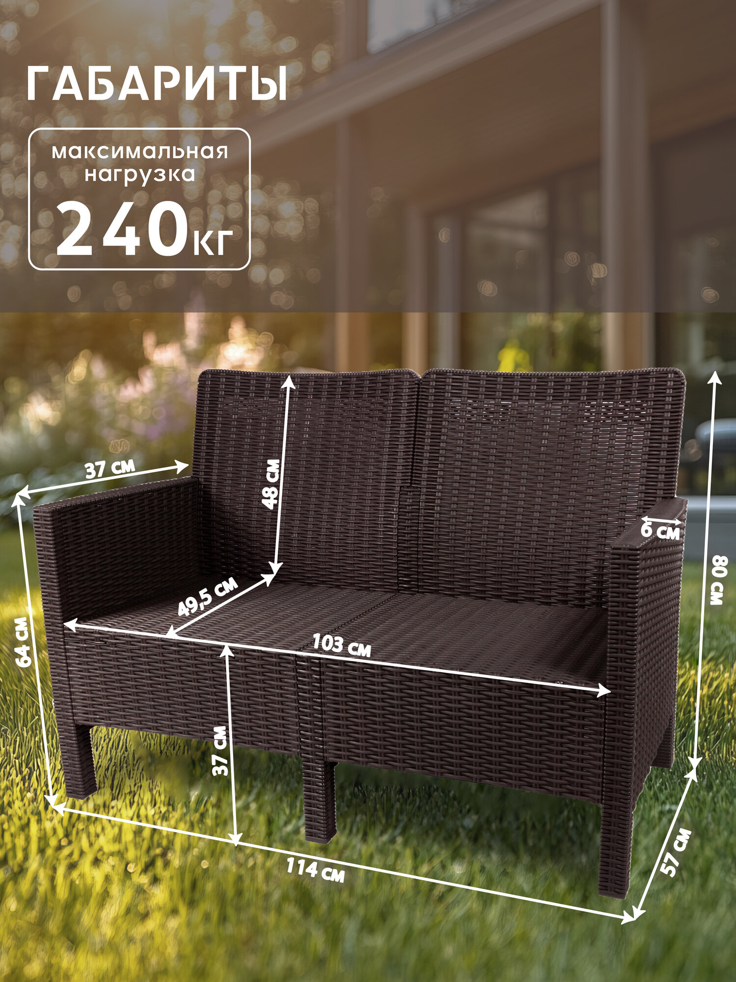 Двухместный диван пластиковый литой имитация ротанга СадКо – уютная зона отдыха в вашем саду!