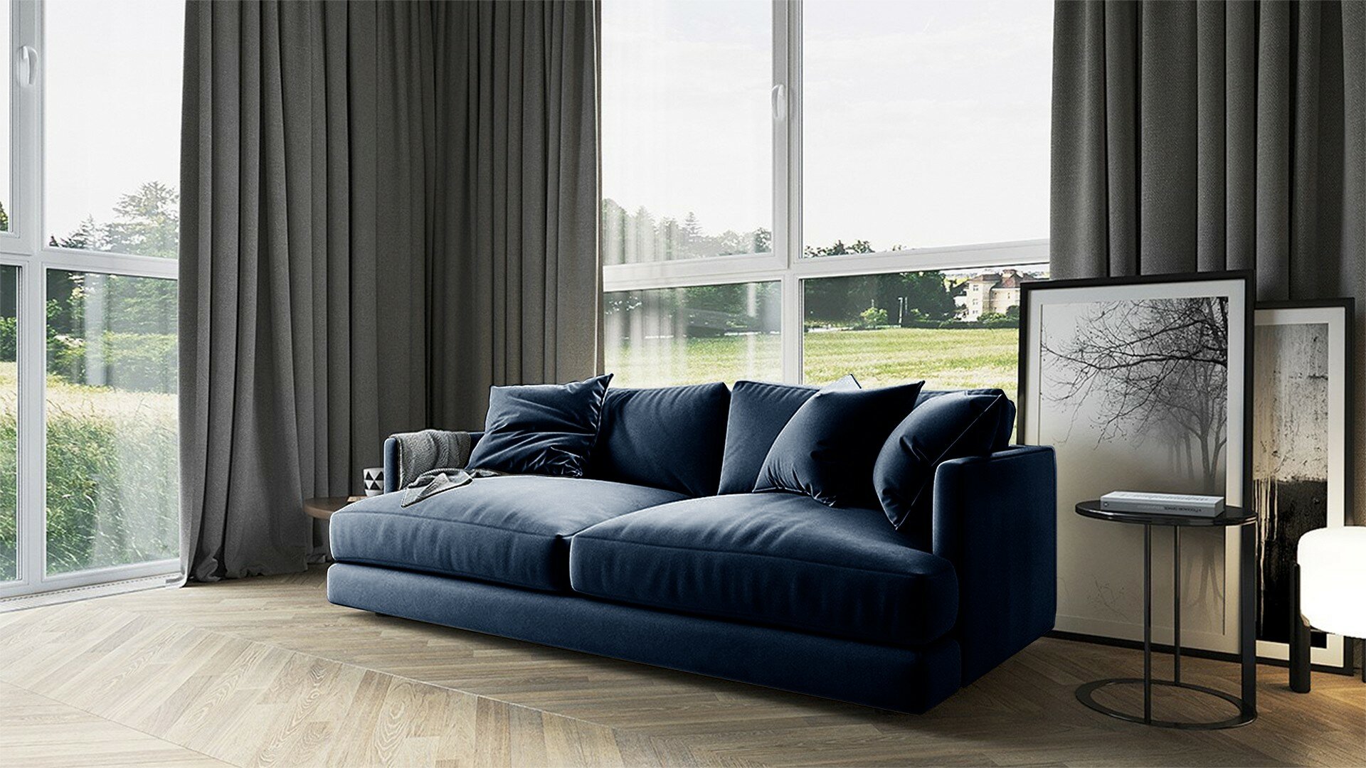 Диван Ибица Velutto 54 NEW 215x116x93 см, синий Велютто, еврокнижка Фиеста