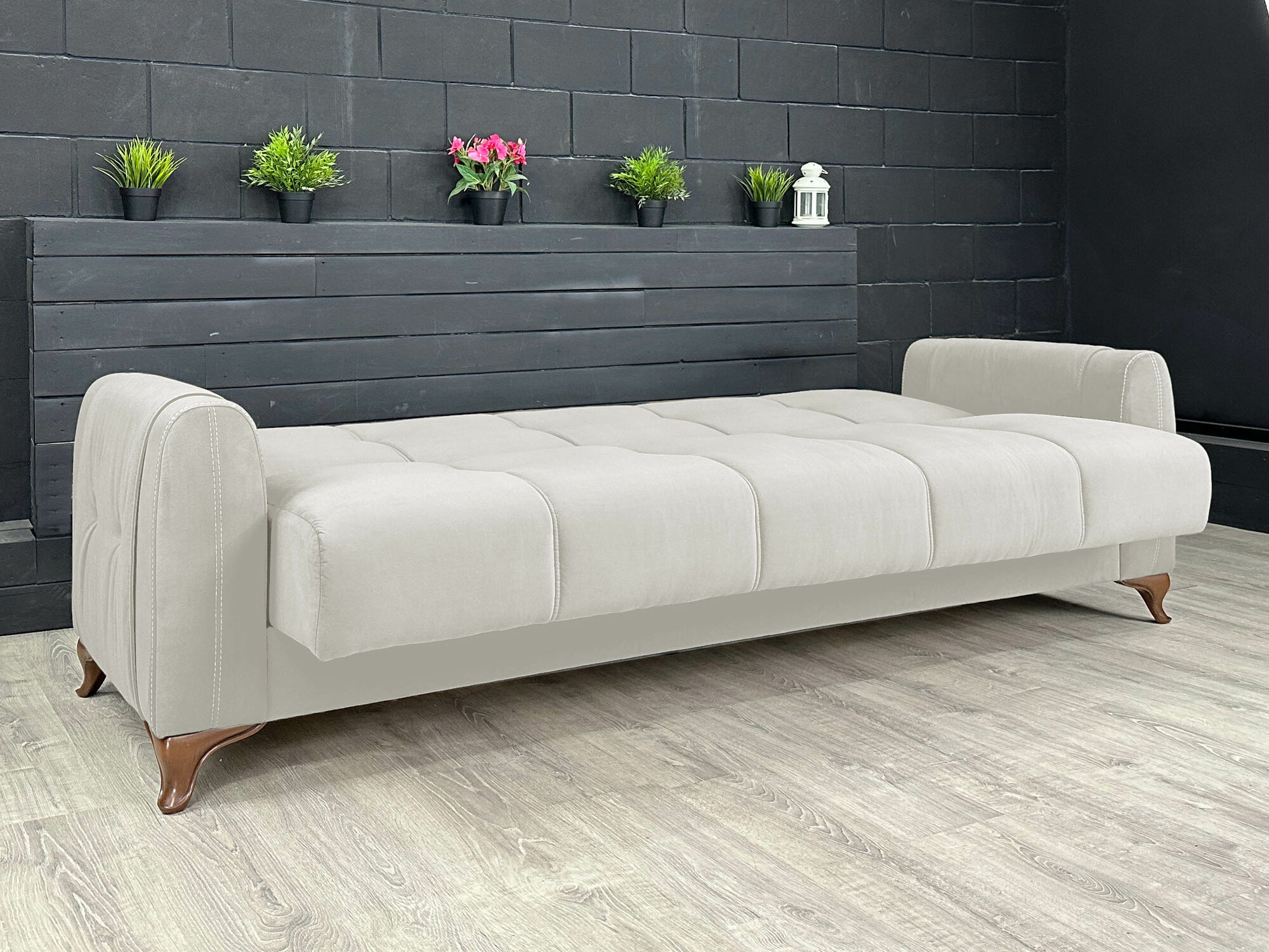 Купить Диван раскладной Мемфис Велюр светло-бежевый / ножки — коричневые Djivani с доставкой по всей России.