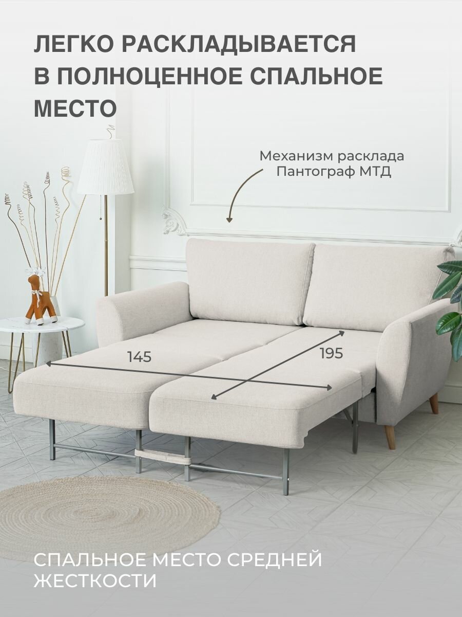 - Надежный механизм Пантограф Дуо позволяет разложить диван в просторную двухспальную кровать для полноценного сна.