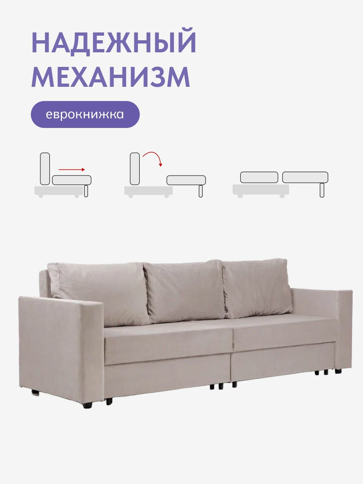 Специальная конструкция еврокнижка позволяет легко трансформировать диван в комфортное двуспальное место для сна, что делает его незаменимым при приеме гостей. Кроме того, данное изделие оснащено подлокотниками, что добавляет дополнительный комфорт в использованию.
