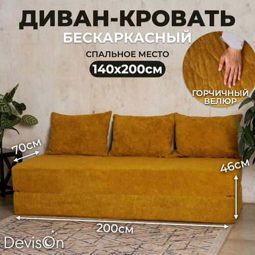 Купить Диван-кровать бескаркасный Devison Ultra Comfort Горчичный велюр 70/140х200 см с доставкой по всей России. Диван-кровать бескаркасный Devison Ultra Comfort Горчичный велюр 70/140х200 см: сравнение цен, характеристики, фото, актуальное наличие и цены.
