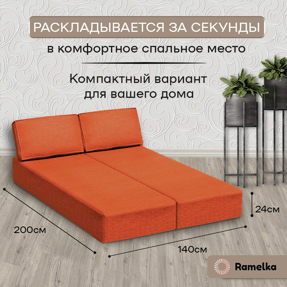 Диван PRO. Бескаркасный диван-кровать 140х200см оранжевый Ramelka Mattress: сравнение цен, характеристики, фото, актуальное наличие и цены.