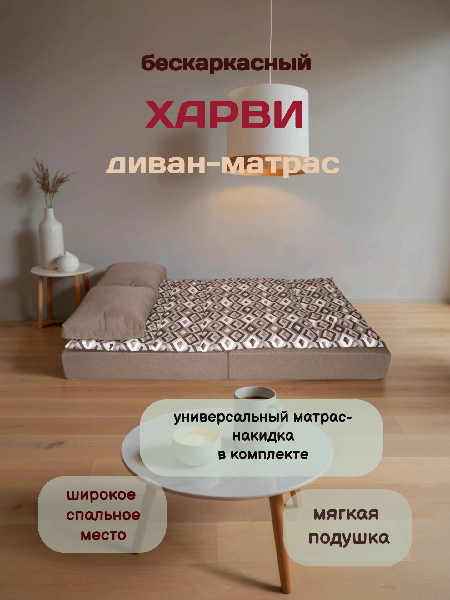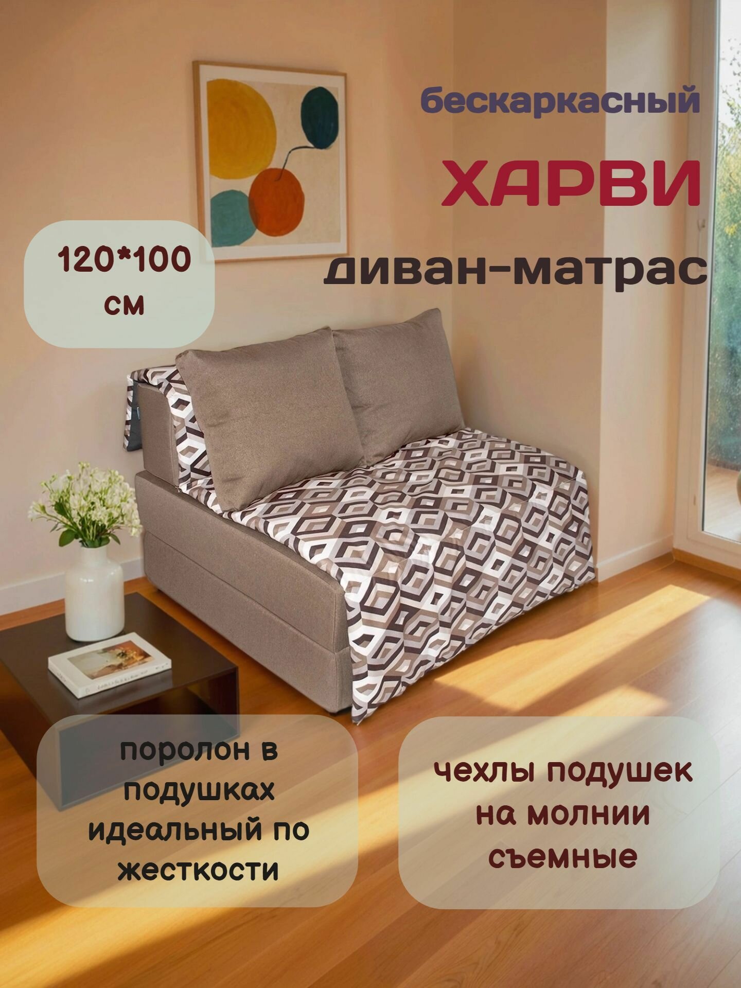 Диван-кровать бескаркасный Харви 120*80 см, для сна и отдыха в комнату, рогожка (коричневый/Ромбы): сравнение цен, характеристики, фото, актуальное наличие и цены.