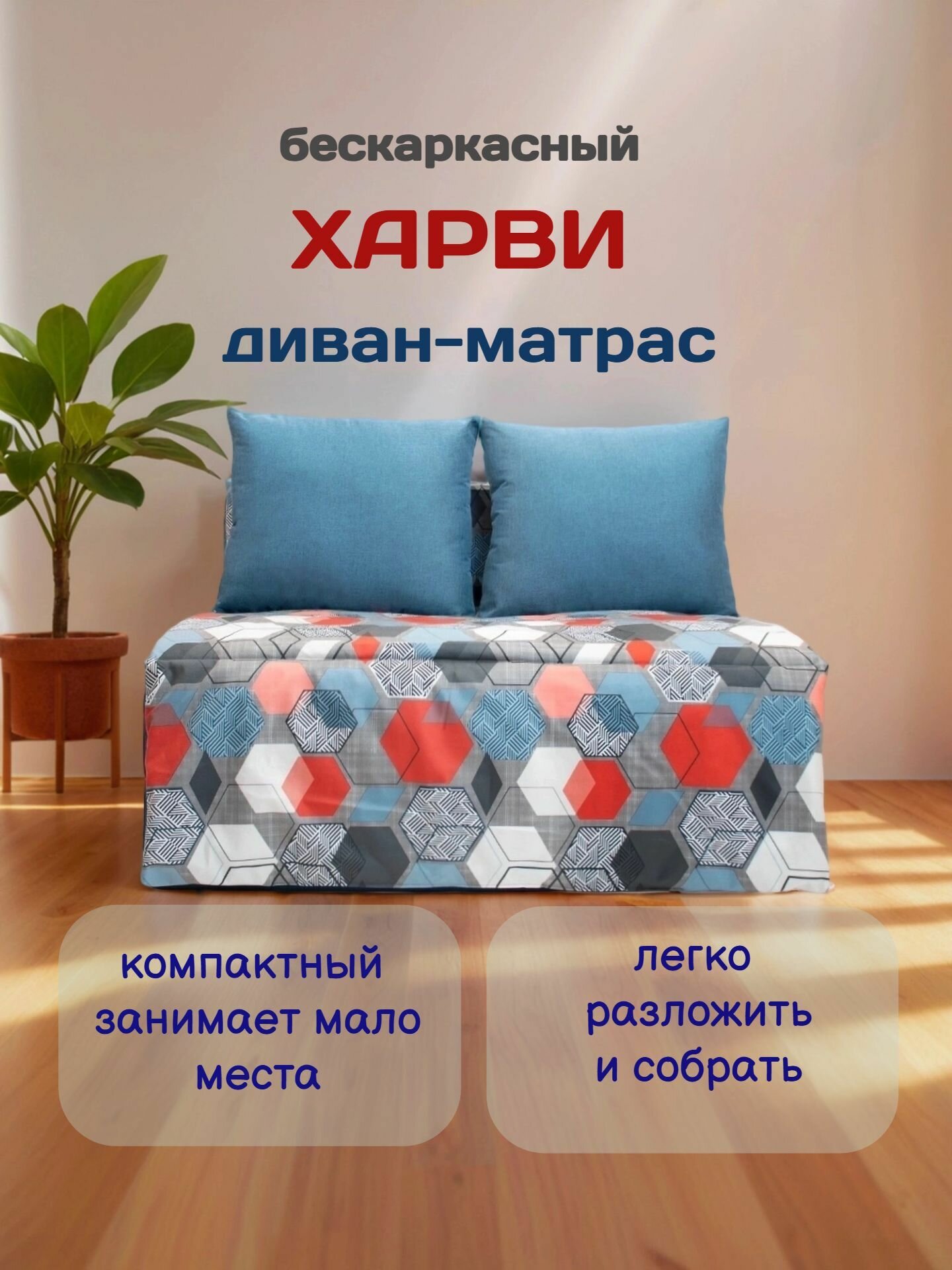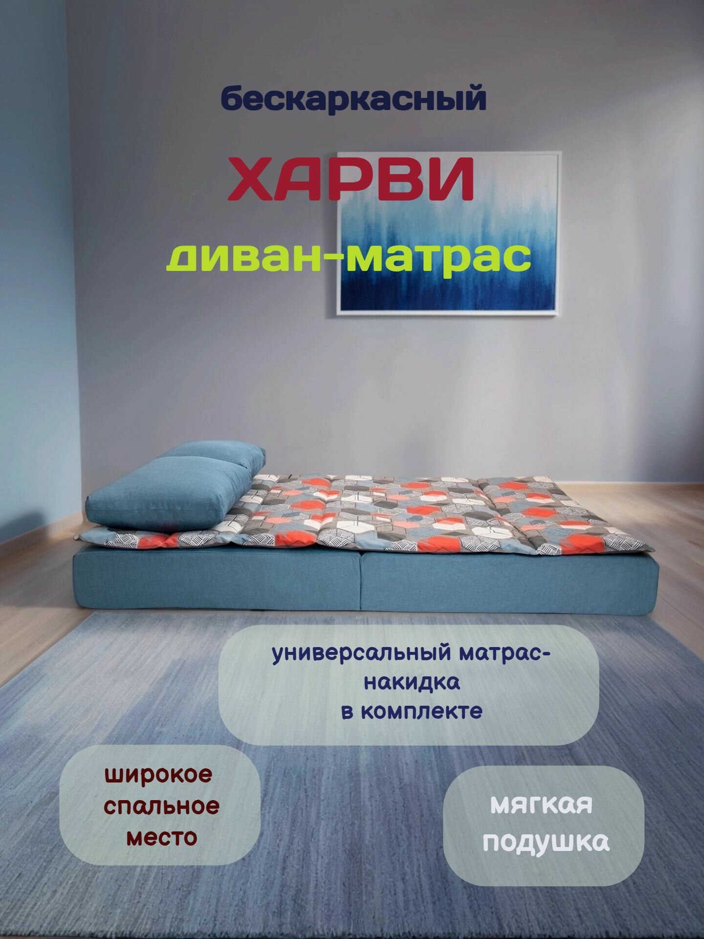 Диван-кровать бескаркасный Харви 120*80 см, для сна и отдыха в комнату, рогожка (синий/Слейт): сравнение цен, характеристики, фото, актуальное наличие и цены.