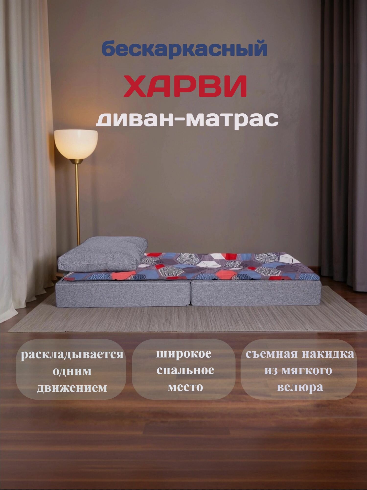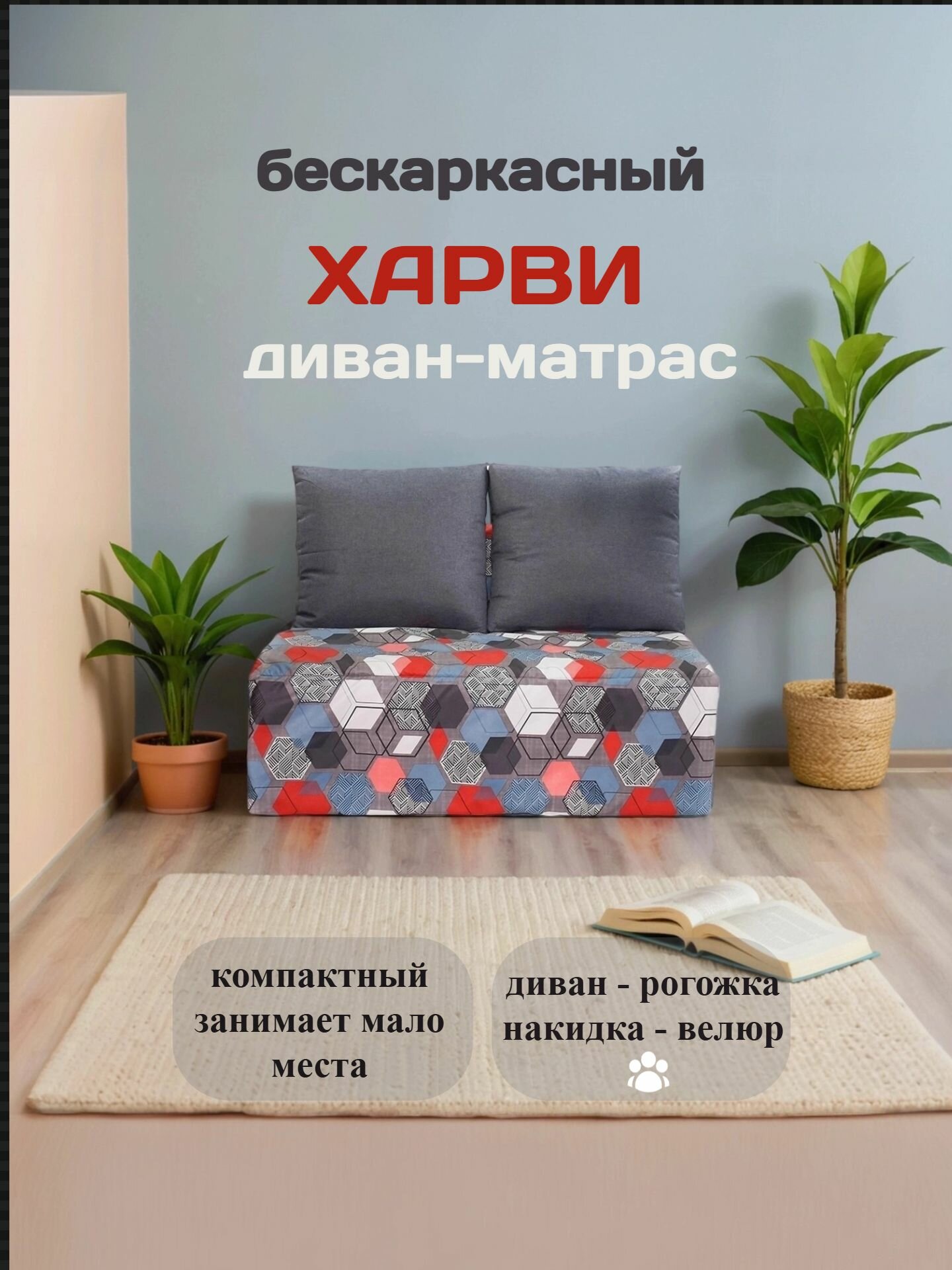 Диван кровать бескаркасный харви с накидкой из велюра для отдыха в комнату на террасу веранду в игровую в холл в коридор - это оптимальное решение для небольших комнат, хорошо подойдет на лоджии, балконе, зоне отдыха и развлечений для детей и взрослых. Модное, не такое как все остальные, хороший повод удивить гостей. Размеры в собранном состоянии ширина 120см глубина 100см, высота посадки 40см, высота с подушкой 80см Легко трансформируется в кровать для полноценного сна и пуф. Размеры кровати ширина 120см, длина 200см, высота от пола 20-25см при дополнительном использовании матрасика. Дополнительно есть две подушки: подушки для отдыха и декоративный матрасик из разноцветного велюра и синтетического волокна. Съемные чехлы модулей могут быть постираны в домашних условиях на режиме деликатной стирки. Внутри каждого модуля – пенополиуретан, который обеспечивает легкость и безопасность, все элементы полностью легкие на 100%. Можно легко передвигать даже детям, отсутствуют жесткие элементы каркаса, что исключает возможность травм и ушибов, легко перевозить на новое место, перемещать по квартире во время перестановок. Изделие не скрипит со временем и не ломается, а поврежденные элементы можно легко заменить без перетяжки всего изделия. Возможно изготовление изделия под конкретный размер. Компактное, многофункциональное изделие хорошо впишется в любое пространство. Легкость и практичность позволит использовать кресло в ситуации частых переездов и перестановок (на даче, на лоджии, в гостевом доме, в арендуемом помещении, в детской комнате или хостеле). Может служить дополнительным посадочным и спальным местом для гостей. Содержащая хлопок, гипоаллергенная, антивандальная ткань подходит для ежедневного контакта с телом и поверхностями дома. Выбирая этот диван вы получаете: Мягкий декоративный матрасик можно использовать как самостоятельное изделие. 1. Диван из фактурной ткани, можно подобрать орнамент на любой вкус. 2. Съемные чехлы модулей легко стираются в домашних условиях. 3. Отсутствие жестких элементов каркаса исключает возможность травм и ушибов, обеспечивает удобство перемещения. 4. Наполнитель препятствует появлению плесени, грибка и клещей. 5. На поверхностях чехла есть застежка-липучка, благодаря чему можно соединять две кровати, образуя полноценное спальное место высотой 40 см. 6. Есть возможность изготовить изделие по индивидуальным размерам. 7. Изголовье крепится на молнии, его можно отстегнуть и использовать как дополнительную подушку. FREEFORM еще больше свободы форм и яркости красок, желаем приятных покупок и ждем ваших отзывов. Цвета изделий на сайте могут незначительно отличаться от реальных из-за особенностей цветопередачи вашего устройства.