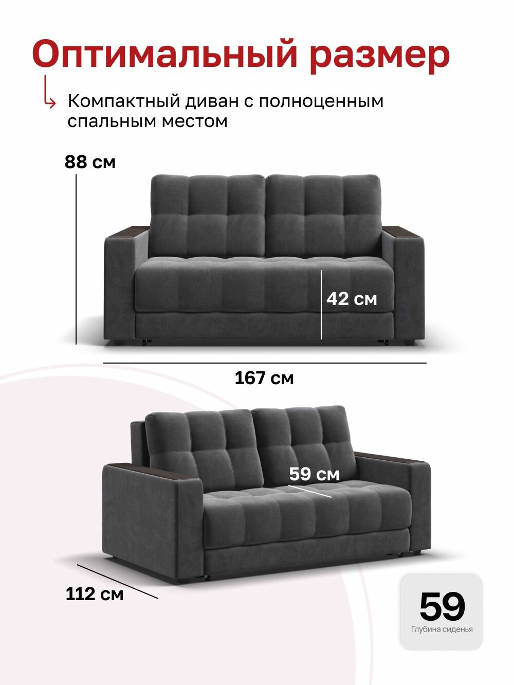без подлокотников, пружинный блок, раскладная конструкция, с подлокотниками, съемные подушки, ящик для белья