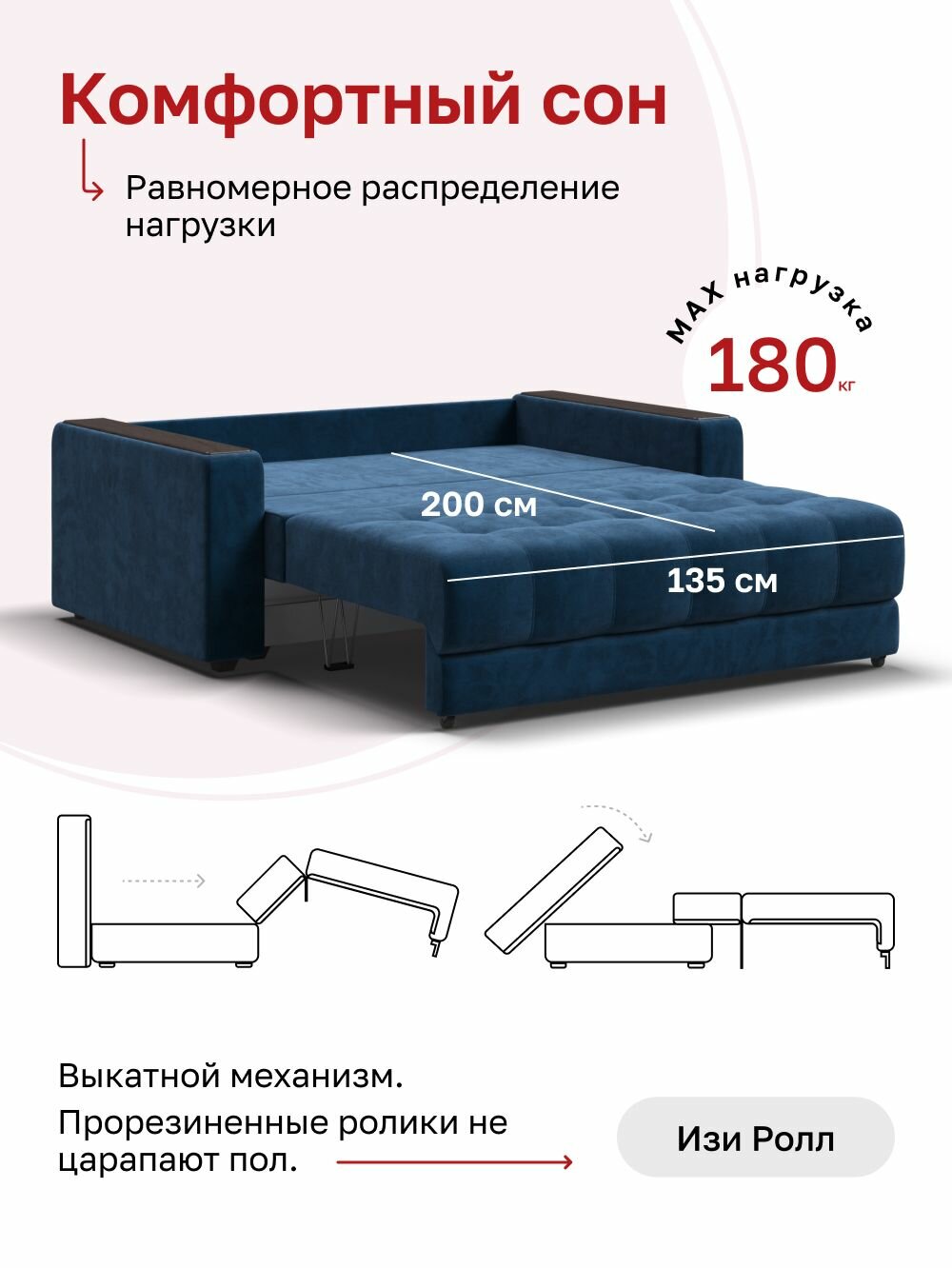 Диван-кровать Босс Маркет 2х местный, выкатной easy roll, велюр MONOLIT синий, 167х112х88 см: сравнение цен, характеристики, фото, актуальное наличие и цены.