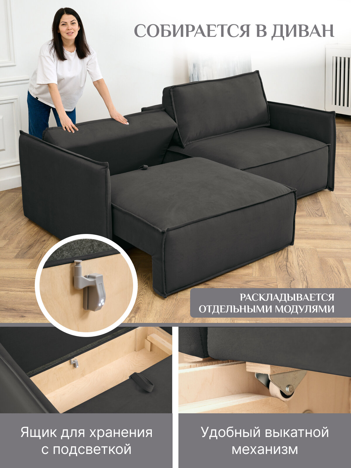 Купить Комплект модулей Brendoss 318 модуль раскладной, кресло кровать модульный, материал износостойкий велюр, цвет графит с доставкой по всей России.