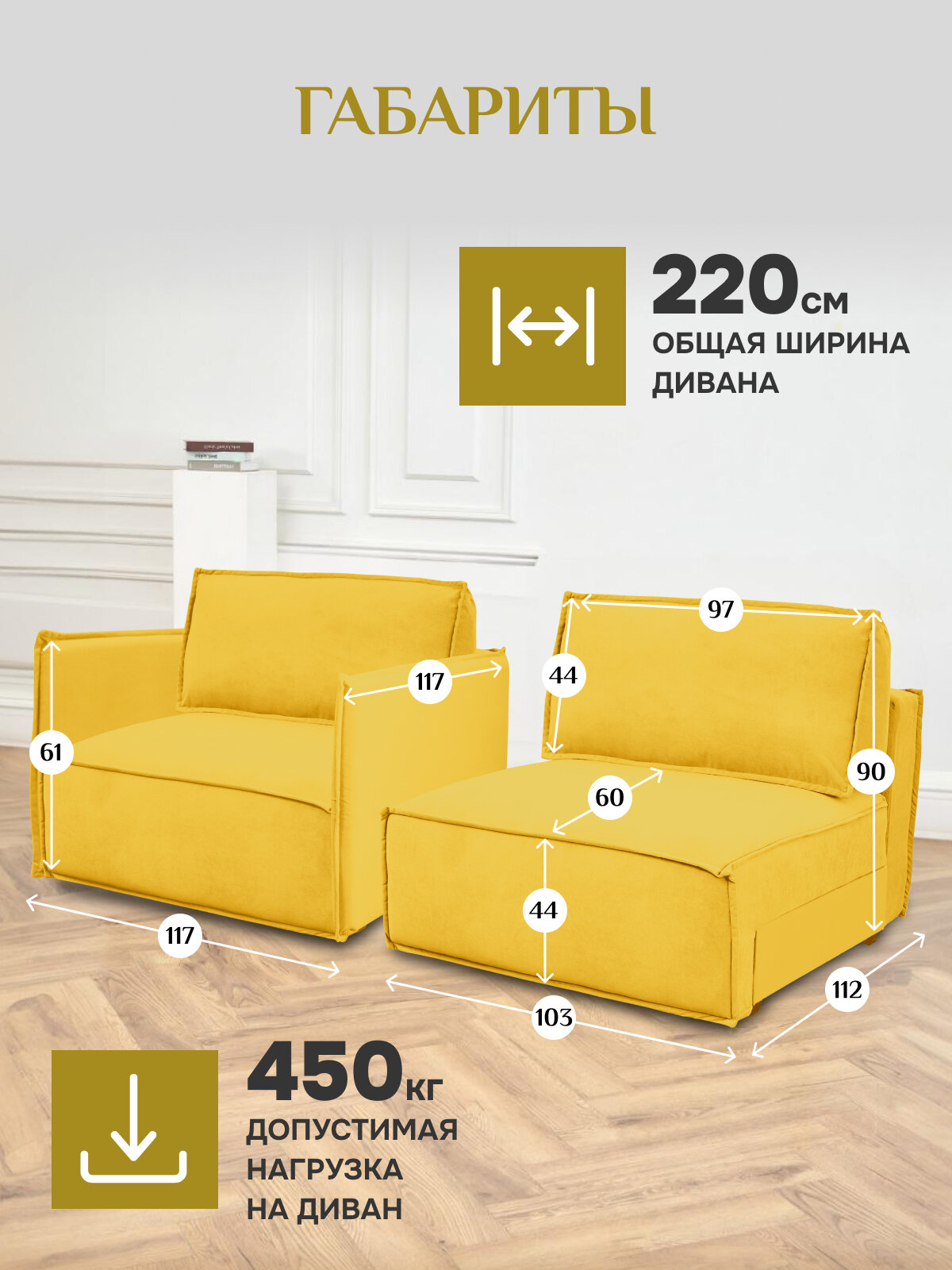 Комплект модулей Brendoss 318 модуль раскладной, кресло кровать модульный, материал износостойкий велюр, цвет желтый: сравнение цен, характеристики, фото, актуальное наличие и цены.