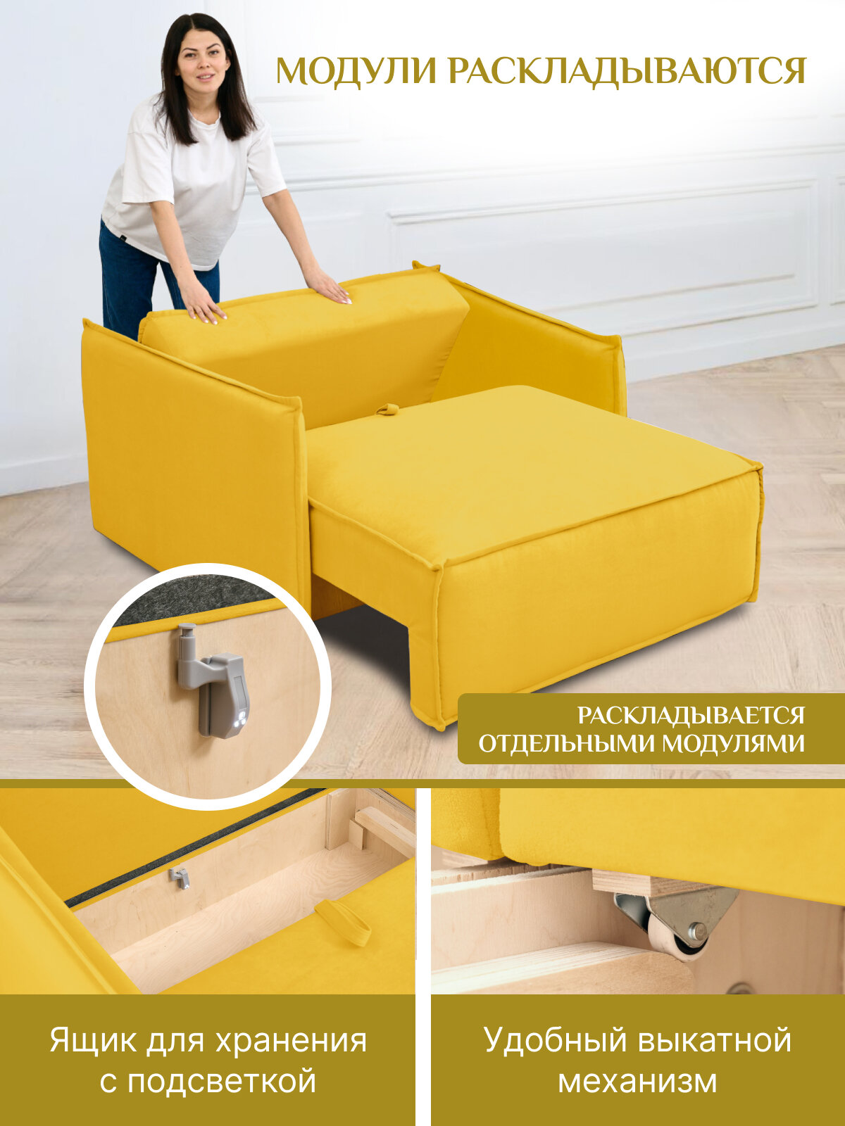 Купить Комплект модулей Brendoss 318 модуль раскладной, кресло кровать модульный, материал износостойкий велюр, цвет желтый с доставкой по всей России. Комплект модулей Brendoss 318 модуль раскладной, кресло кровать модульный, материал износостойкий велюр, цвет желтый: сравнение цен, характеристики, фото, актуальное наличие и цены.