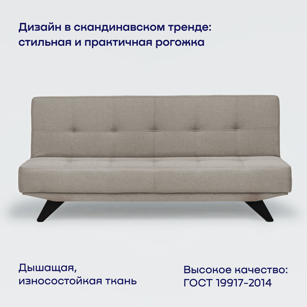 Мини диван доступен в двух цветах и выполнен из рогожки – практичной, неприхотливой в уборке и долговечной ткани, которая легко чистится, не притягивает пыль и устойчива к бытовым загрязнениям. Плотный фактурный материал в натуральных природных оттенках (серый и бежевый) прекрасно гармонирует с любым направлением в интерьере – модный скандинавский стиль, подходит для современного направления в дизайне или минимализма в стиле лофт.