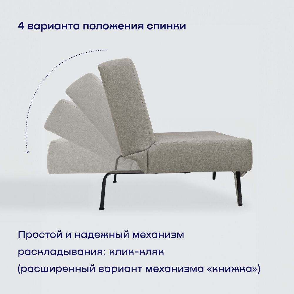Приятная на ощупь мягкая обивка, глубокая посадка, высокий пенный наполнитель – все продумано для максимального удобства. Маленький диван с большими возможностями для вашего индивидуального комфорта. Смотрите любимый фильм или читайте книгу, наслаждаясь каждой минутой! Это настоящий диван-трансформер: 4 варианта фиксации спинки позволят подстроить модель BuyLike под ваши пожелания.