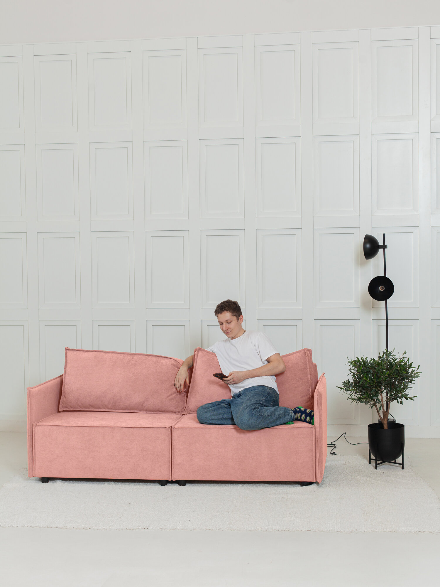 Купить Диван-кровать CITYHD Парма слим, розовый велюр, еврокнижка, скандинавский стиль с доставкой по всей России.