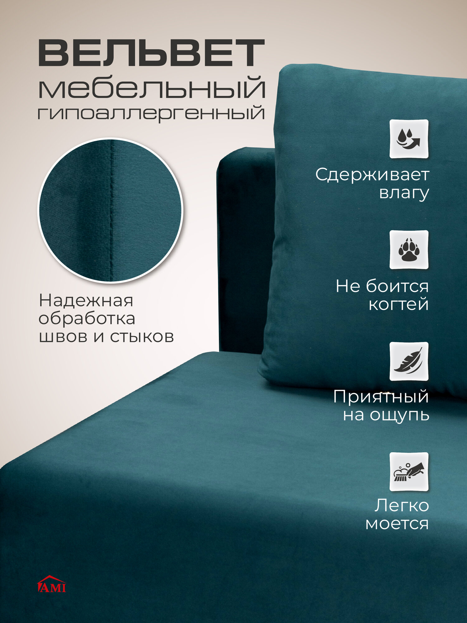 Диван кровать двухместный раскладной прямой Порту в гостиную, еврокнижка 186х83х90 см изумрудный вельвет, Ами Мебель: сравнение цен, характеристики, фото, актуальное наличие и цены.
