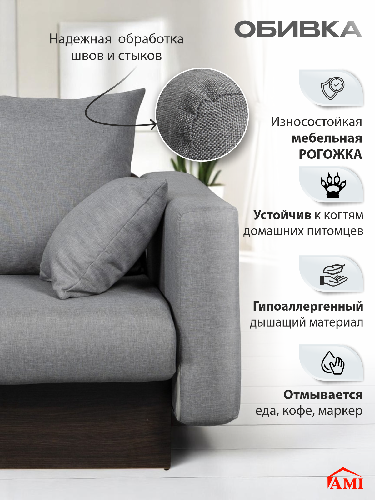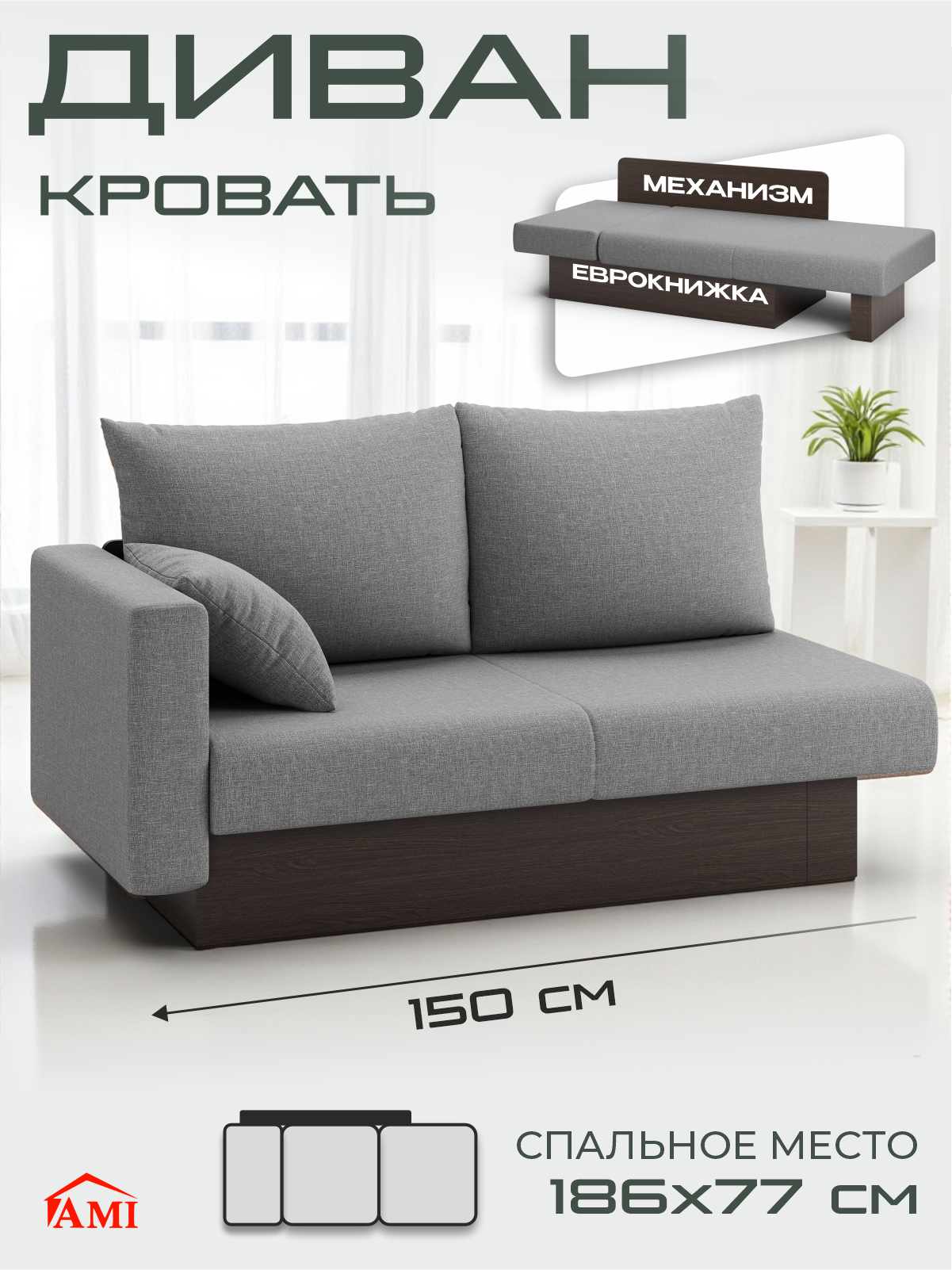 Диван кровать двухместный раскладной прямой Рио в гостиную, еврокнижка 150х78х81 см серая рогожка, Ами Мебель: сравнение цен, характеристики, фото, актуальное наличие и цены.