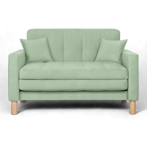 Диван малогабаритный раскладной двухместный 140 см, что позволяет ему занимать минимальное пространство в комнате. Раскладной диван-кровать приятен благодаря однотонному велюру и удобному матрасу.