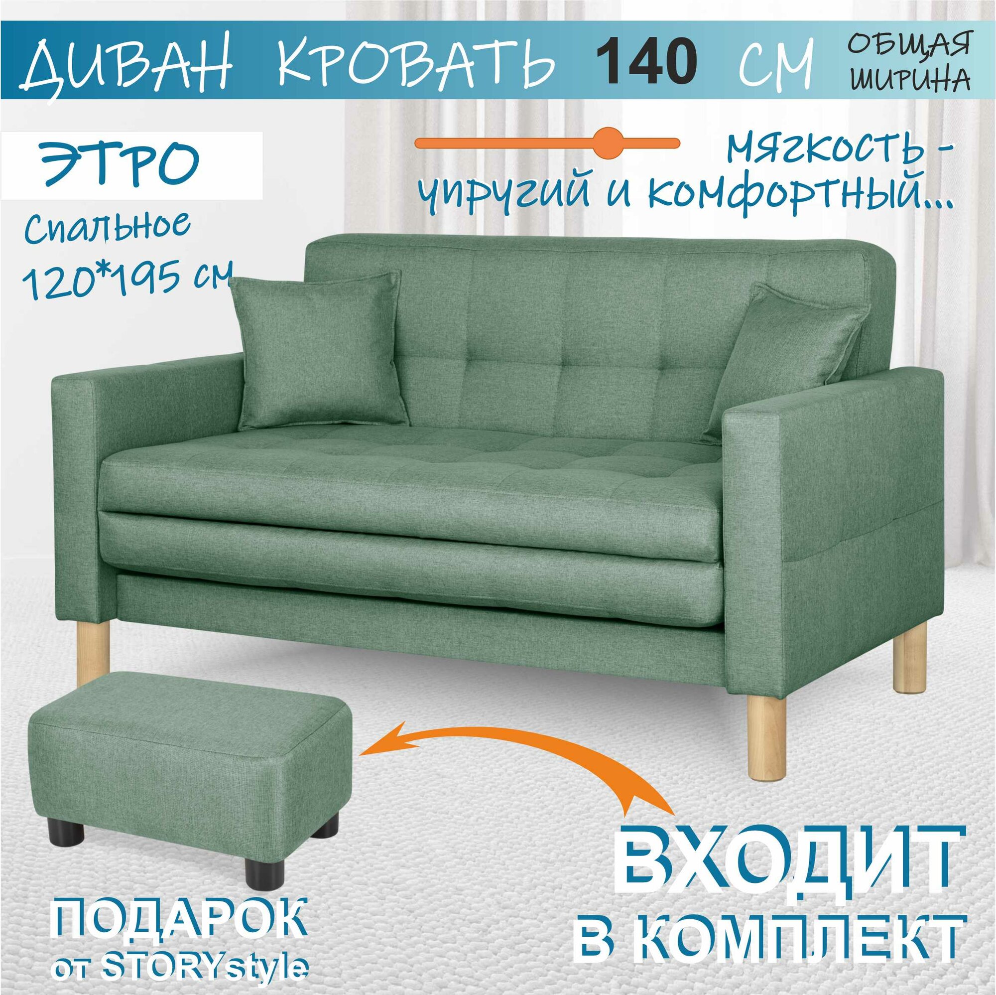 Диван-кровать Этро, прямой, 140*77*78, спальное 120*194, рогожка зеленая, Лагуна 693: сравнение цен, характеристики, фото, актуальное наличие и цены.