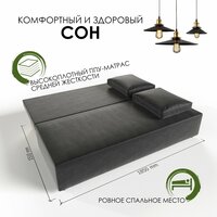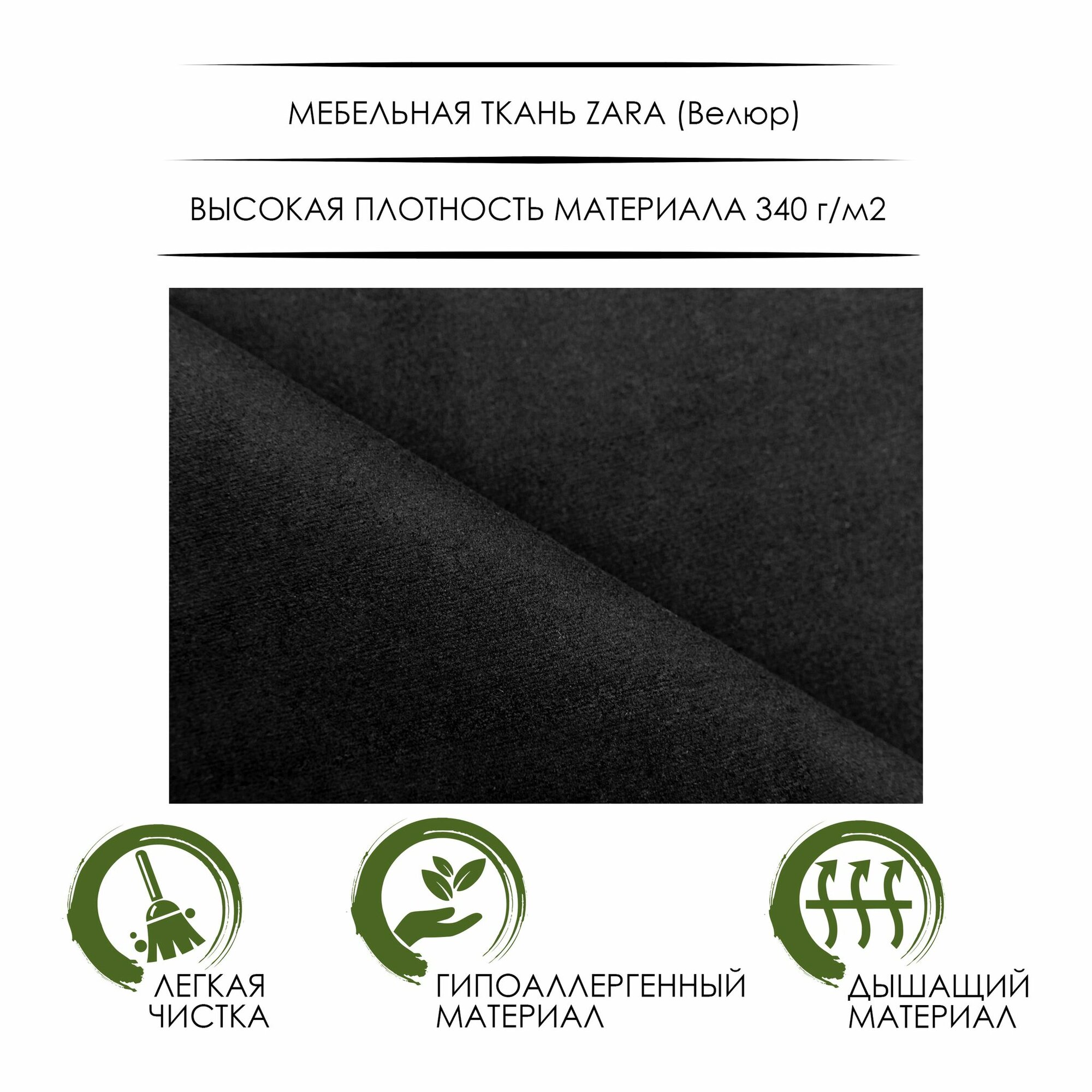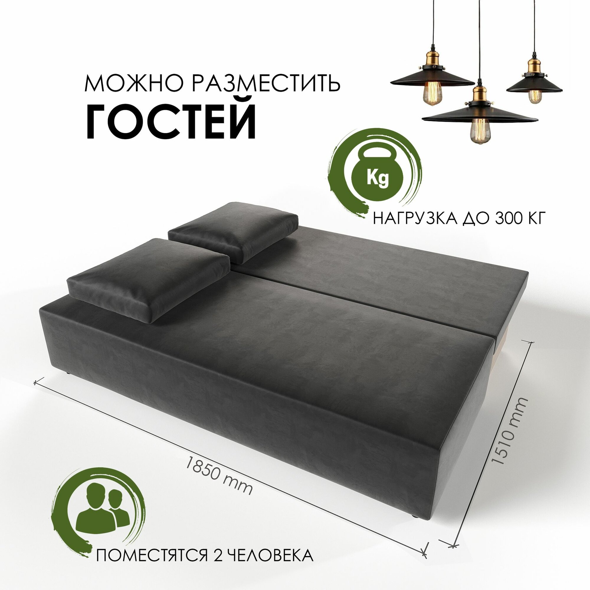 Прямой раскладной диван-кровать еврокнижка Торнадо из велюра черного цвета для отдыха и ожидания от мебельной фабрики Фантазер – это стильный, современный и удобный предмет мебели, который впишется в любое пространство. Он компактный, функциональный и недорогой, что делает его универсальным решением для разных помещений, а также стилей, благодаря большому выбору типа материала и расцветок. Диван Торнадо имеет удобное посадочное место, комфортное место для сна 150х185 см и вместительный ящик для белья. Наш диван Вы можете использовать в спальне, гостиной, детской комнате, кухне, прихожей, а также в зоне ожидания офиса, салона красоты. Диван-кровать имеет прямую форму и малогабаритные размеры, его легко разместить даже в небольшом помещении. Когда Вам нужно устроить гостям отдых или ночлег, диван легко превращается в удобную кровать. Благодаря своей книжной конструкции, он легко раскладывается и складывается, не занимая много места. Раскладной механизм диван-кровати делает его удобным для использования в разных ситуациях и обеспечивает комфортный отдых. Диван книжка - идеальный выбор для детской комнаты, где необходимо максимально эффективно использовать пространство. Он также станет отличным решением для офиса, где нужно предоставить возможность отдохнуть. А в салоне красоты такой диван поможет создать уютную обстановку для клиентов, которые ждут своей очереди. Высота посадочного места, его глубина в сочетании с необходимым углом наклона спинки обеспечивают комфорт и удобство.