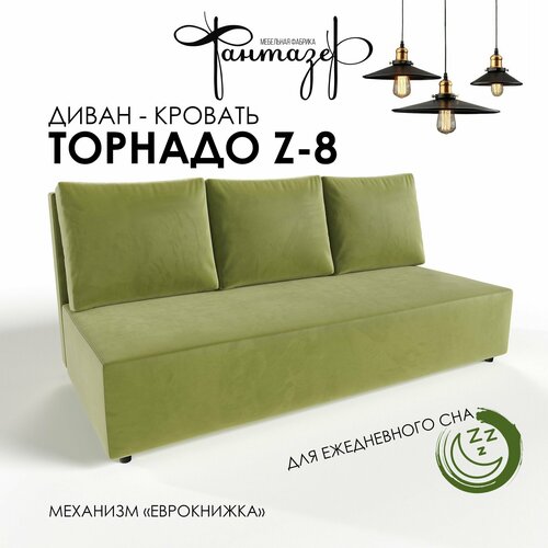 Прямой раскладной диван-кровать еврокнижка Торнадо из велюра зеленого цвета для отдыха и ожидания от мебельной фабрики Фантазер – это стильный, современный и удобный предмет мебели, который впишется в любое пространство. Он компактный, функциональный и недорогой, что делает его универсальным решением для разных помещений, а также стилей, благодаря большому выбору типа материала и расцветок. Диван Торнадо имеет удобное посадочное место, комфортное место для сна 150х185 см и вместительный ящик для белья. Наш диван Вы можете использовать в спальне, гостиной, детской комнате, кухне, прихожей, а также в зоне ожидания офиса, салона красоты. Диван-кровать имеет прямую форму и малогабаритные размеры, его легко разместить даже в небольшом помещении. Когда Вам нужно устроить гостям отдых или ночлег, диван легко превращается в удобную кровать. Благодаря своей книжной конструкции, он легко раскладывается и складывается, не занимая много места. Раскладной механизм диван-кровати делает его удобным для использования в разных ситуациях и обеспечивает комфортный отдых. Диван книжка - идеальный выбор для детской комнаты, где необходимо максимально эффективно использовать пространство. Он также станет отличным решением для офиса, где нужно предоставить возможность отдохнуть. А в салоне красоты такой диван поможет создать уютную обстановку для клиентов, которые ждут своей очереди. Высота посадочного места, его глубина в сочетании с необходимым углом наклона спинки обеспечивают комфорт и удобство.