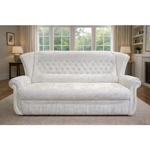 Обивка дивана выполнена из плюшевой мягкой ткани в красивом насыщенном бело-перламутровом цвете от турецкого производителя VipTextil с нежной бархатной текстурой Plush onyx white. Ткань с антивандальным эффектом, не оставляет зацепок, мягкая тактильно приятная. Этот материал легко чистится пенным средством по назначению и обладает антивандальными свойствами.