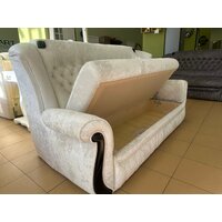 Обивка дивана выполнена из плюшевой мягкой ткани в красивом насыщенном бело-перламутровом цвете от турецкого производителя VipTextil с нежной бархатной текстурой. Ткань с антивандальным эффектом, не оставляет зацепок, мягкая тактильно приятная. Этот материал легко чистится пенным средством по назначению и обладает антивандальными свойствами.