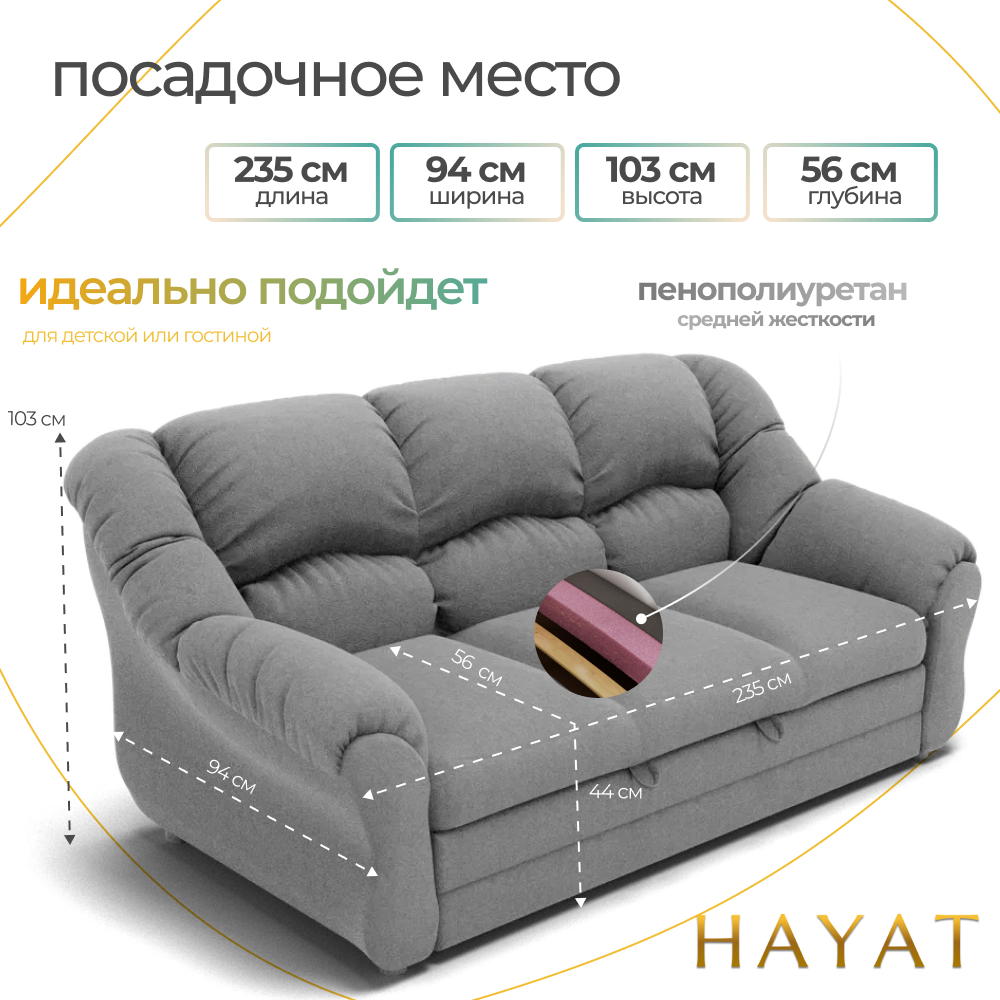 Диван-кровать Хост-1 рассчитан на максимальную нагрузку до 240 кг, что делает его подходящим для людей разного телосложения. Глубина сиденья составляет 56 см, что обеспечивает комфортное размещение.